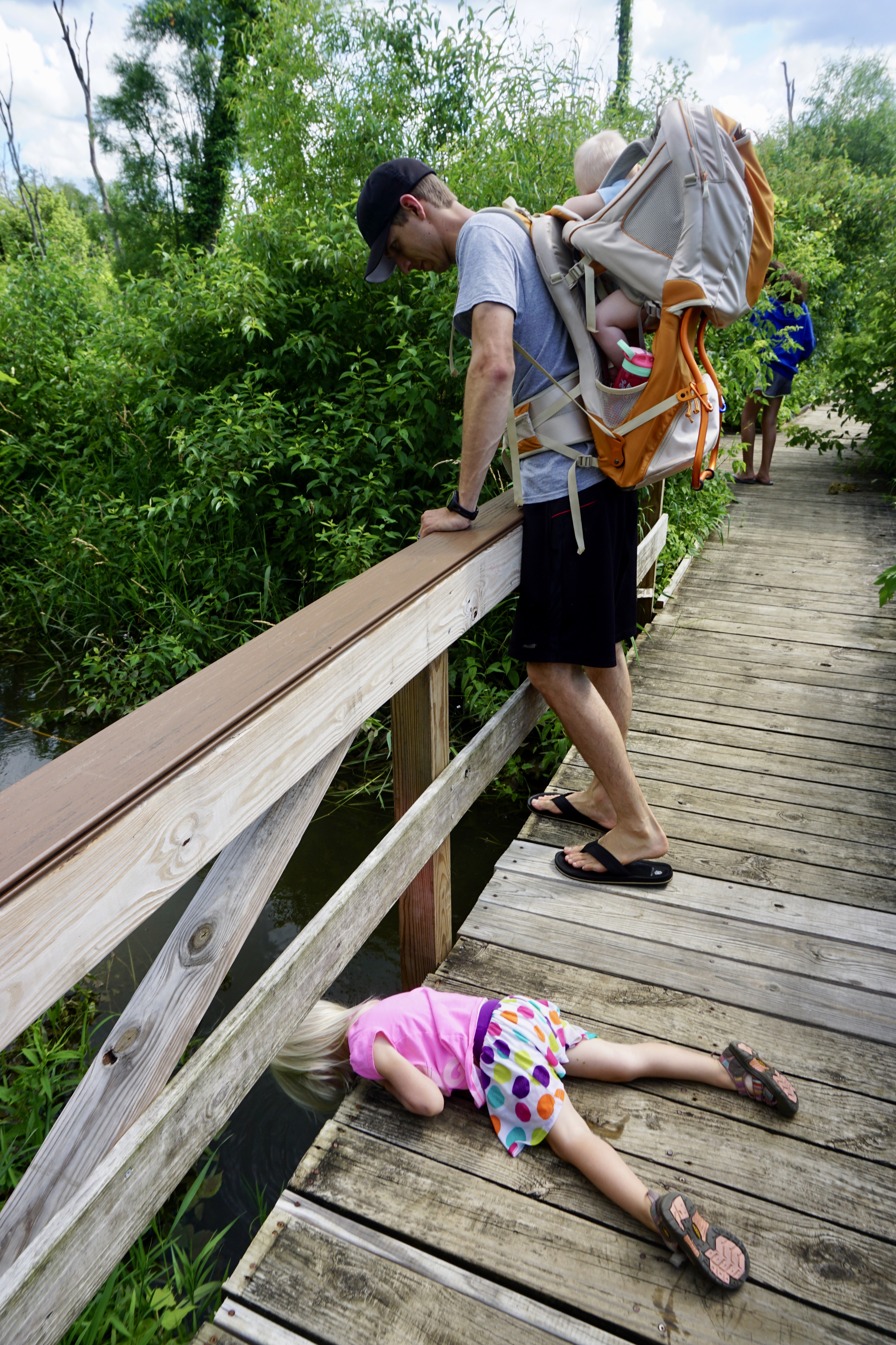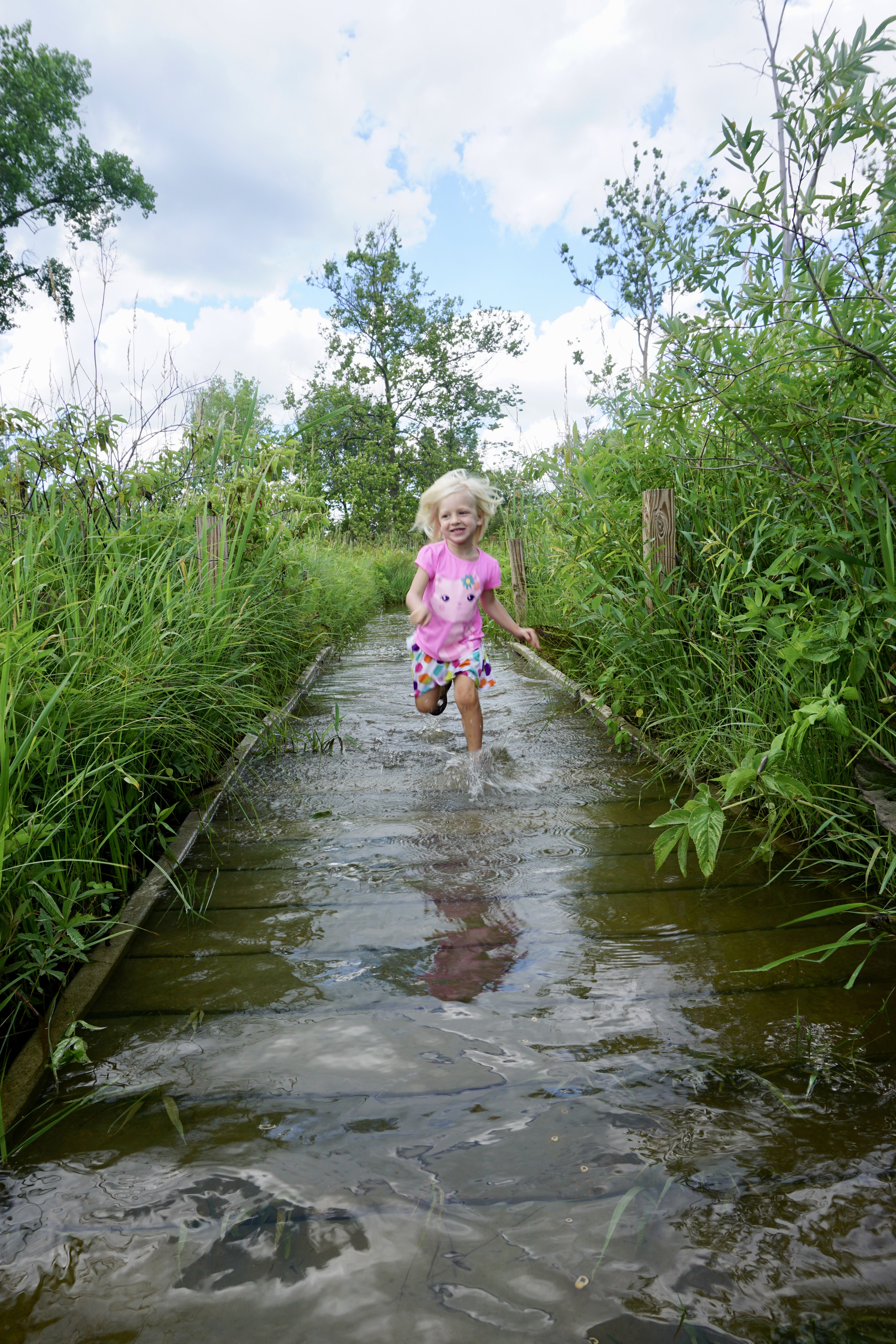 We are taking advantage of the gorgeous weather and spending as much time outdoors as possible. One Saturday we decided to hike a new trail. It had rained a lot the day before, and most the trails were completely flooded. There was a boardwalk, but it was underwater. We had a BLAST hiking this flooded trail! For those of you who have asked, it is Seibenthaler Fen Boardwalk .