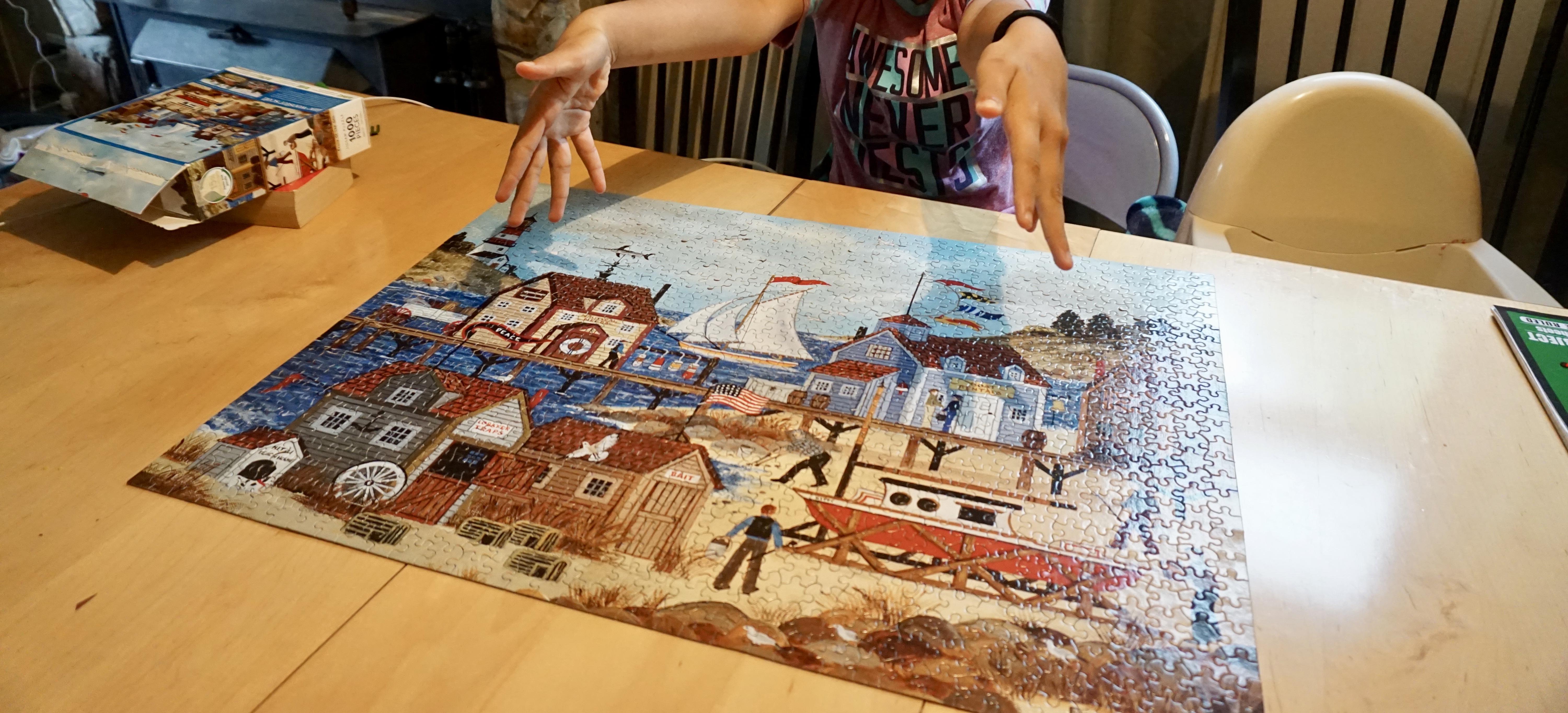 We also managed to do a 1000 piece puzzle this month! Heavenly saw me take it out and couldn’t believe that I would do such a boring thing for FUN. Well, guess who was just as into the puzzle as I was?? This girl right here! She was elated to put the last piece in!