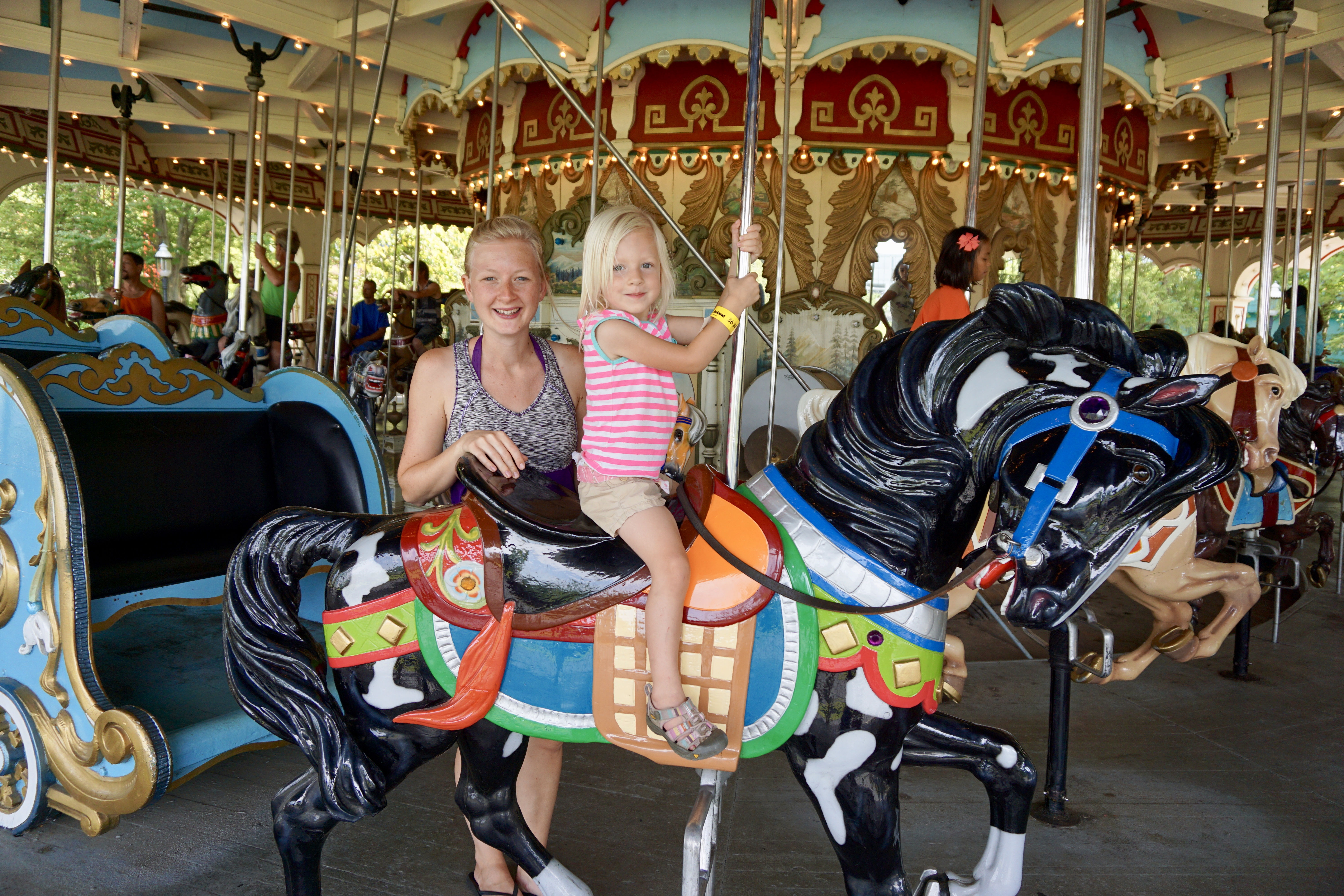 After a few hours at the park, Tera and Kiah had enough of waiting in lines and we decided to head over to find some rides that Tera could ride. We found the carousel first, and Tera LOVED it.