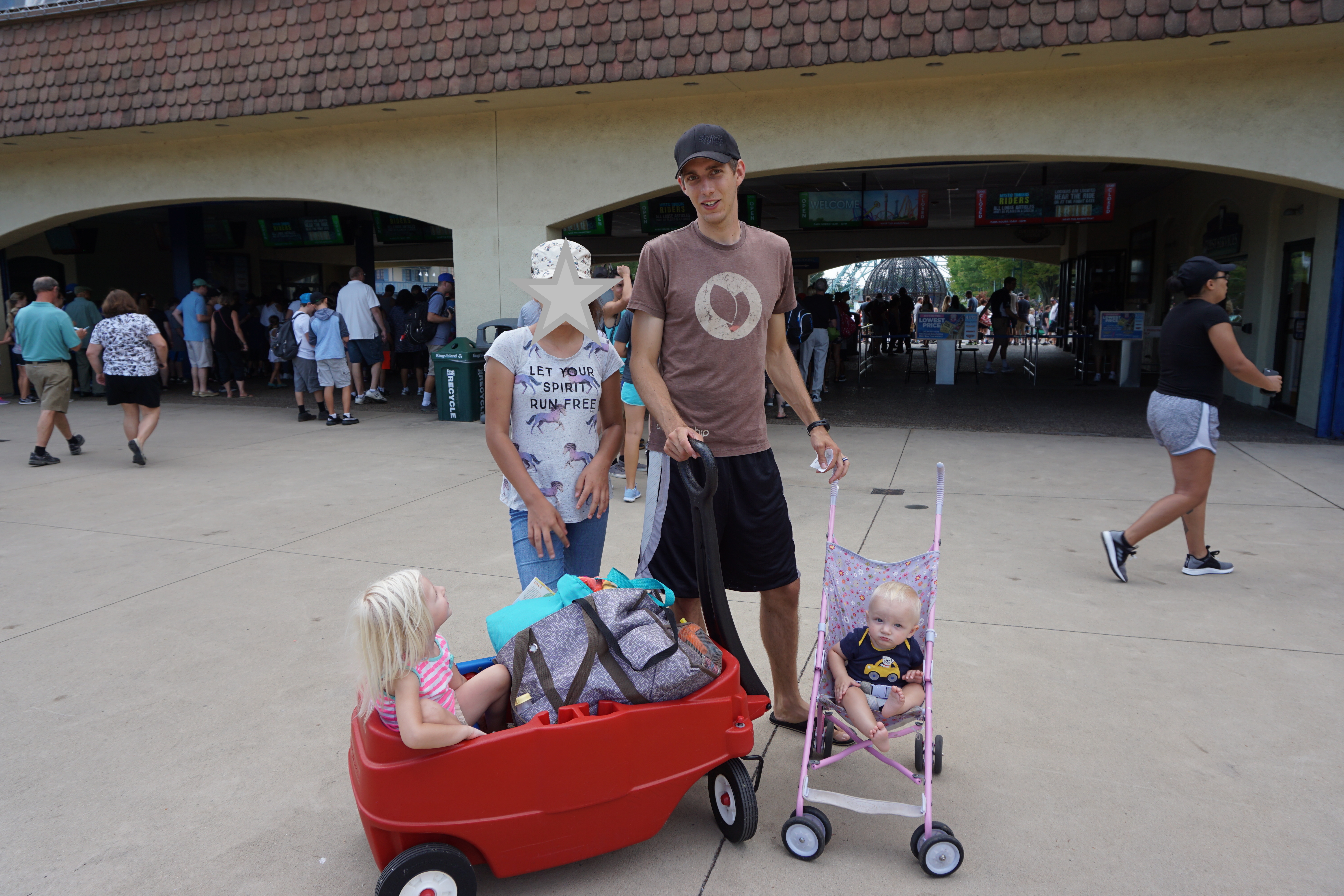 It was a blast! I highly recommend it, although the price for me makes it a once a year type thing. They have *tight* airport-like security at the front and won’t let any outside food or drink in. I did sneak in some snacks and our water bottles, but no coolers or large bags. Most people didn’t have strollers and wagons like we did, and just had a drawstring bag so that they could throw it in the lockers and ride the rides. We, however…had a whole circus and needed both a stroller and a wagon!