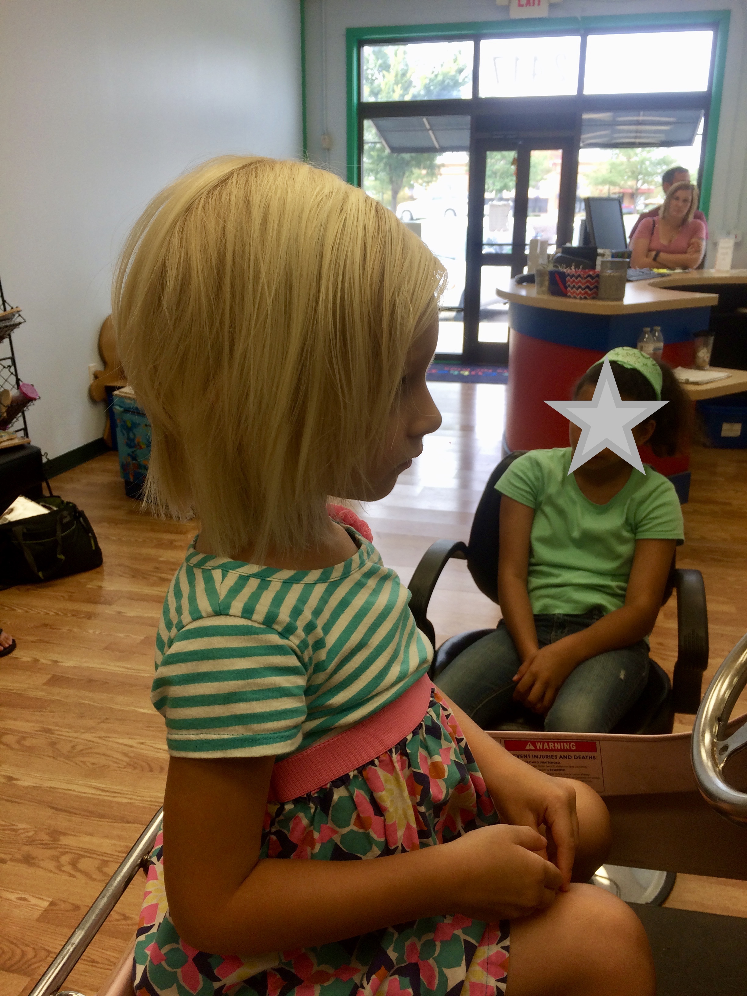 We had Raquel, and she was FABULOUS. She had little tricks to get Tera to look down or up or tilt her head just right. She was Latina, and I originally picked her for Heavenly to get a hair cut from. She was great with Tera’s fine hair and knew immediately what it needed! Â I’d say the mark of a good hairdresser is one who can cut several different hair ethnicities! I will be requesting her each time we go, especially if I go in to get Heavenly’s hair cut.