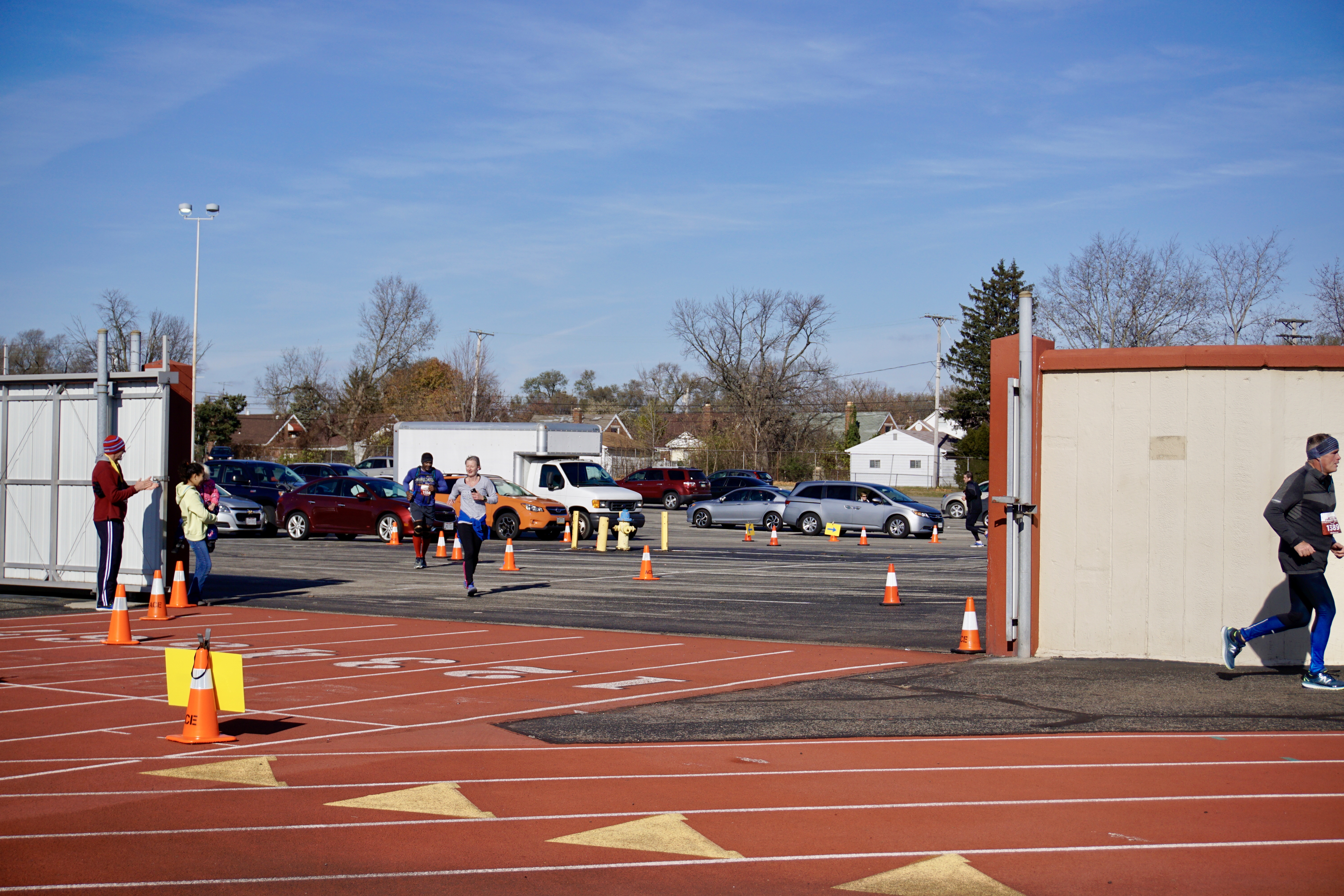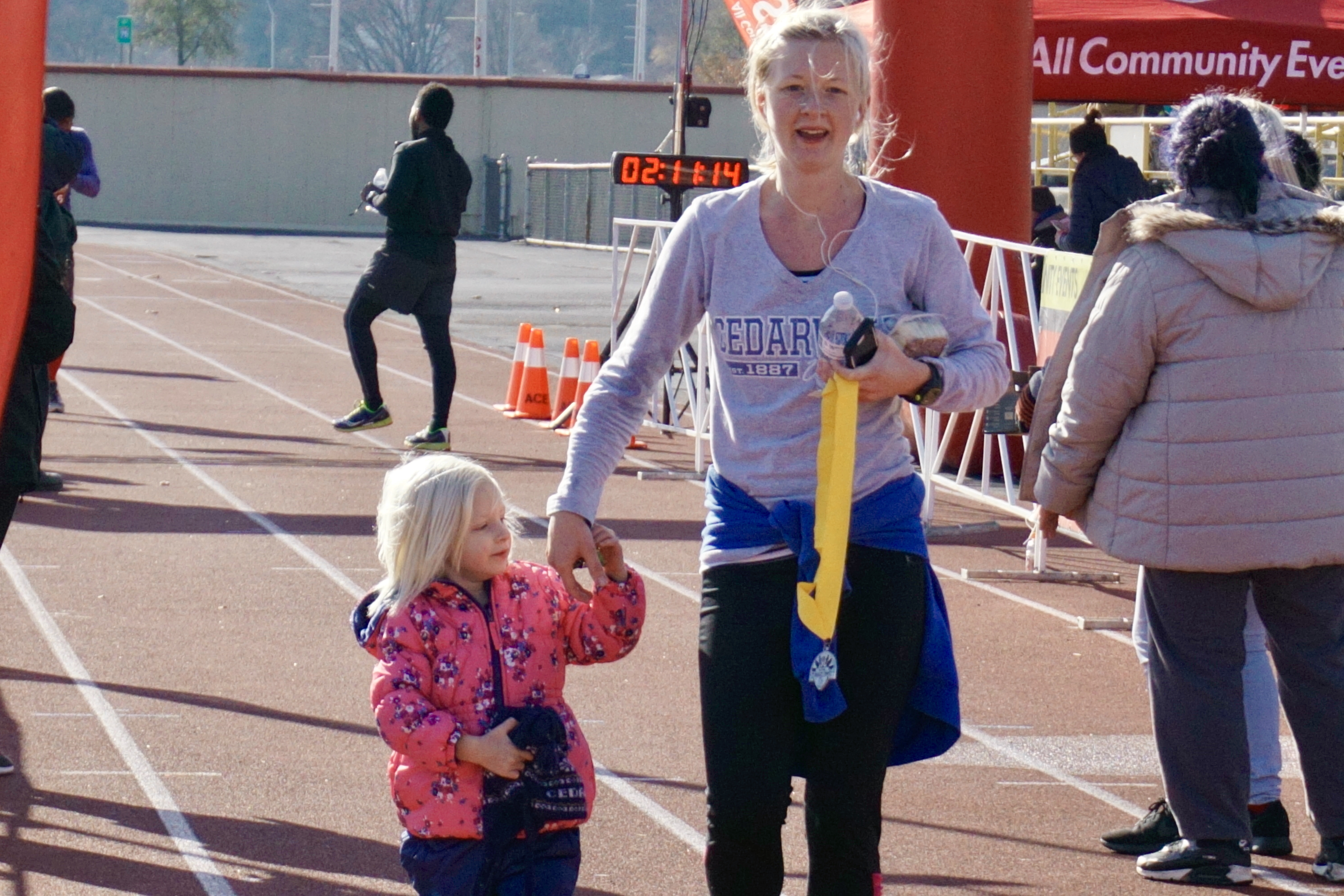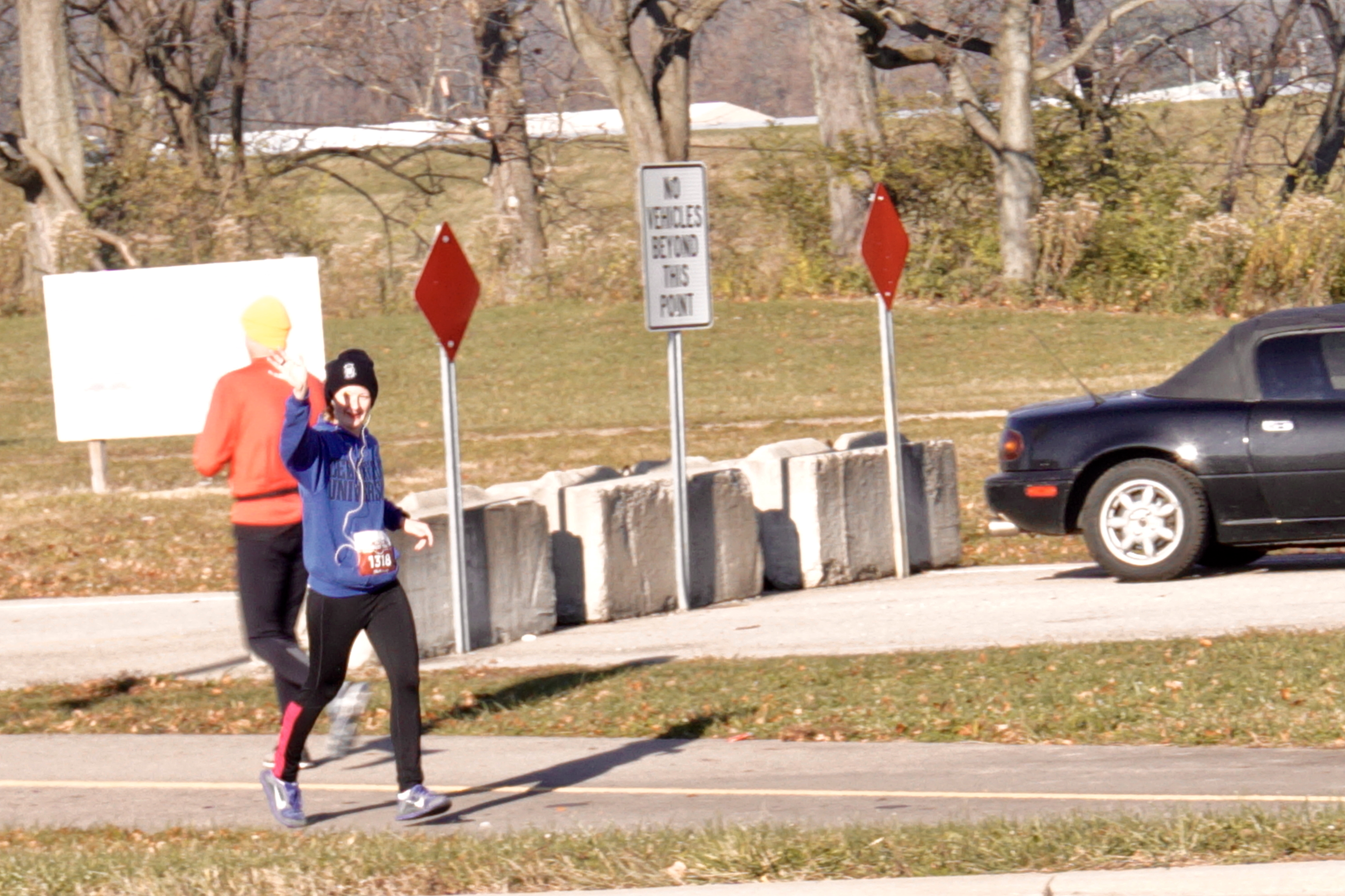 Meanwhile, my Mom and Theo were the real MVPs for bringing three children out into the freezing cold to stand around and wait for my Dad and I to pass them.
