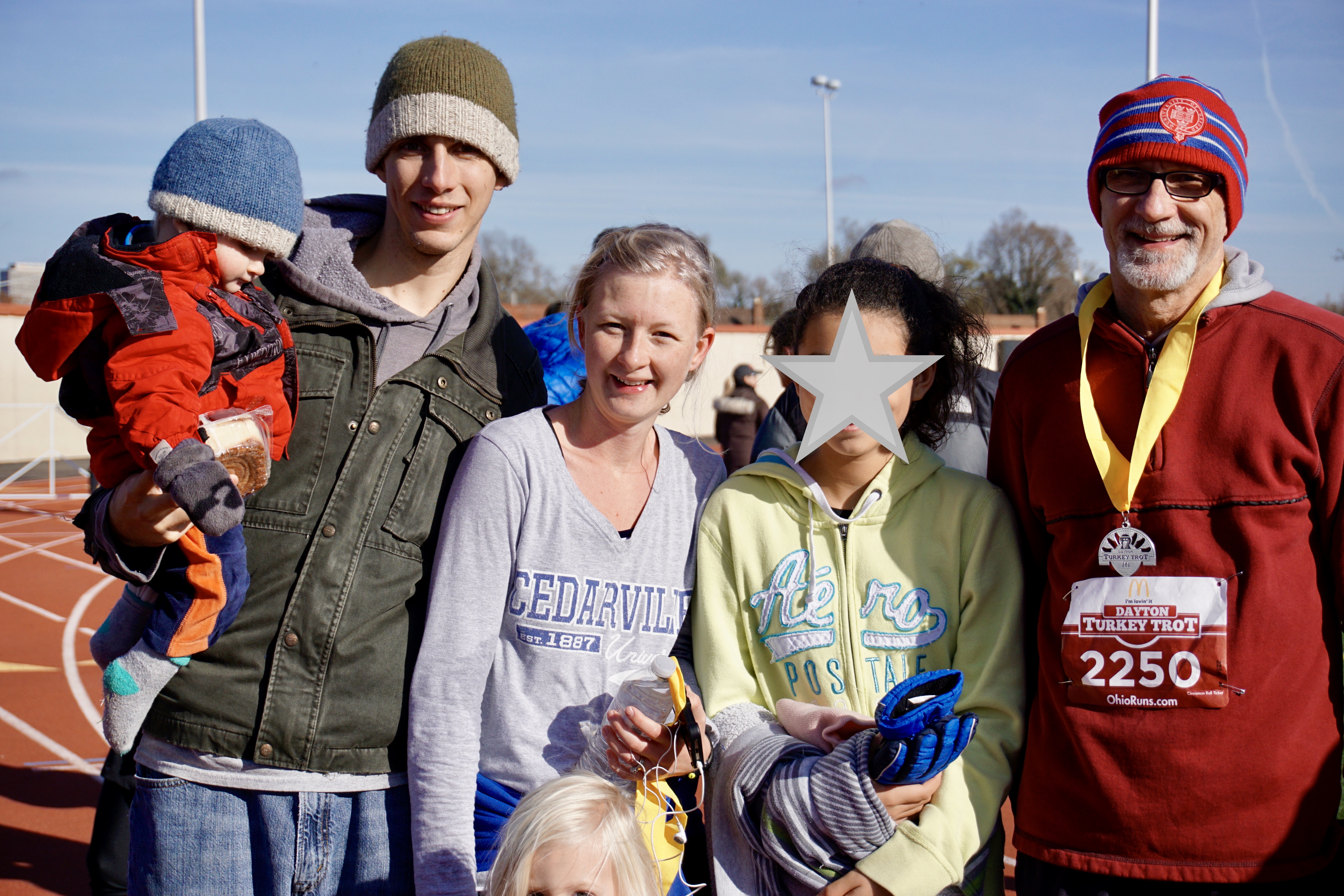 My cheering squad! Seriously, though…they were all troopers to wait out in the cold for me to finish. Also, the sun was shining very brightly so my Mom (taking the picture) couldn’t see that Tera wasn’t in the picture. HAHA.