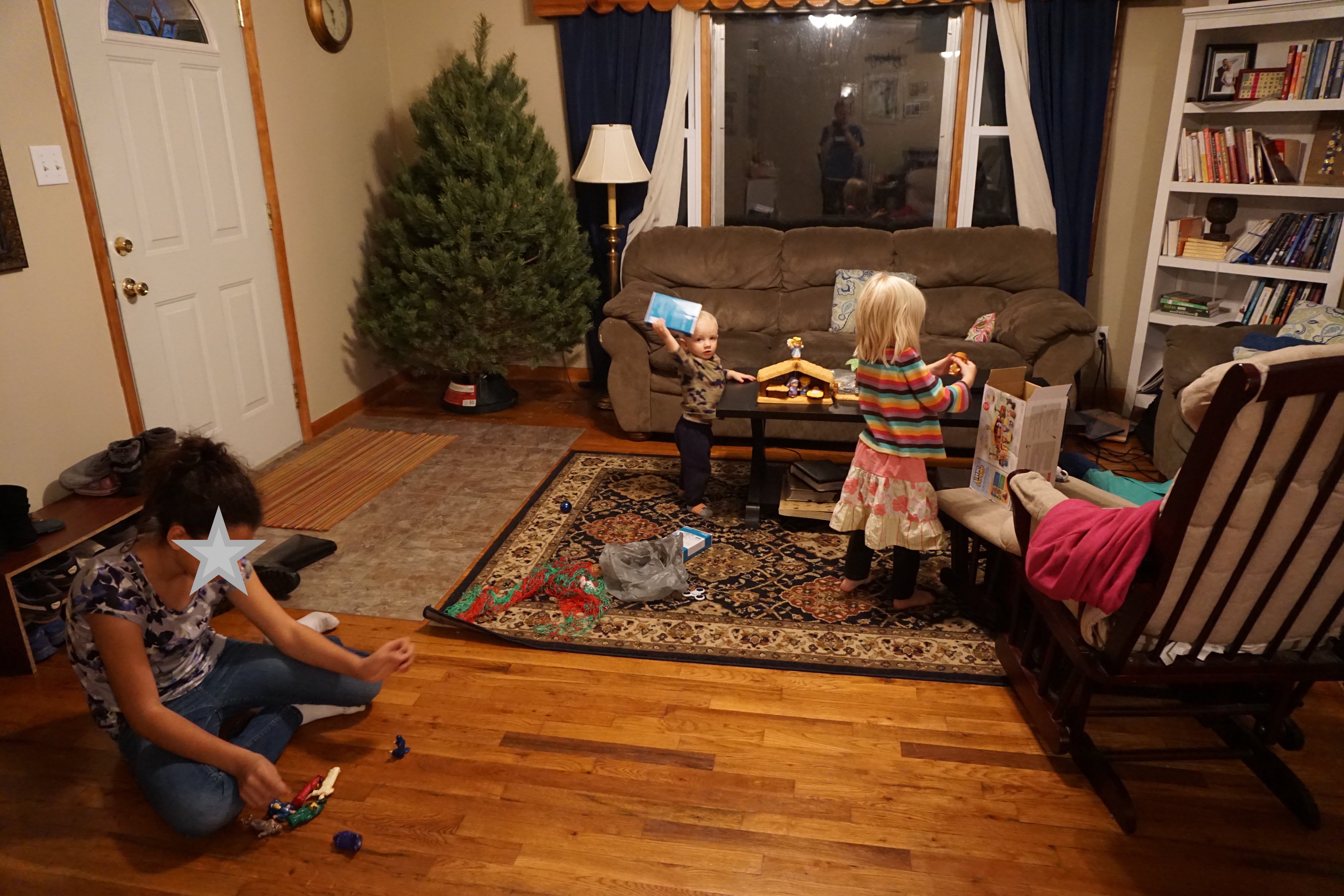 Meanwhile, someone draped the tree net over Kiah’s head and to our surprise, he loved it. We would take it off, and he would put it back on. Hilarious, kid.