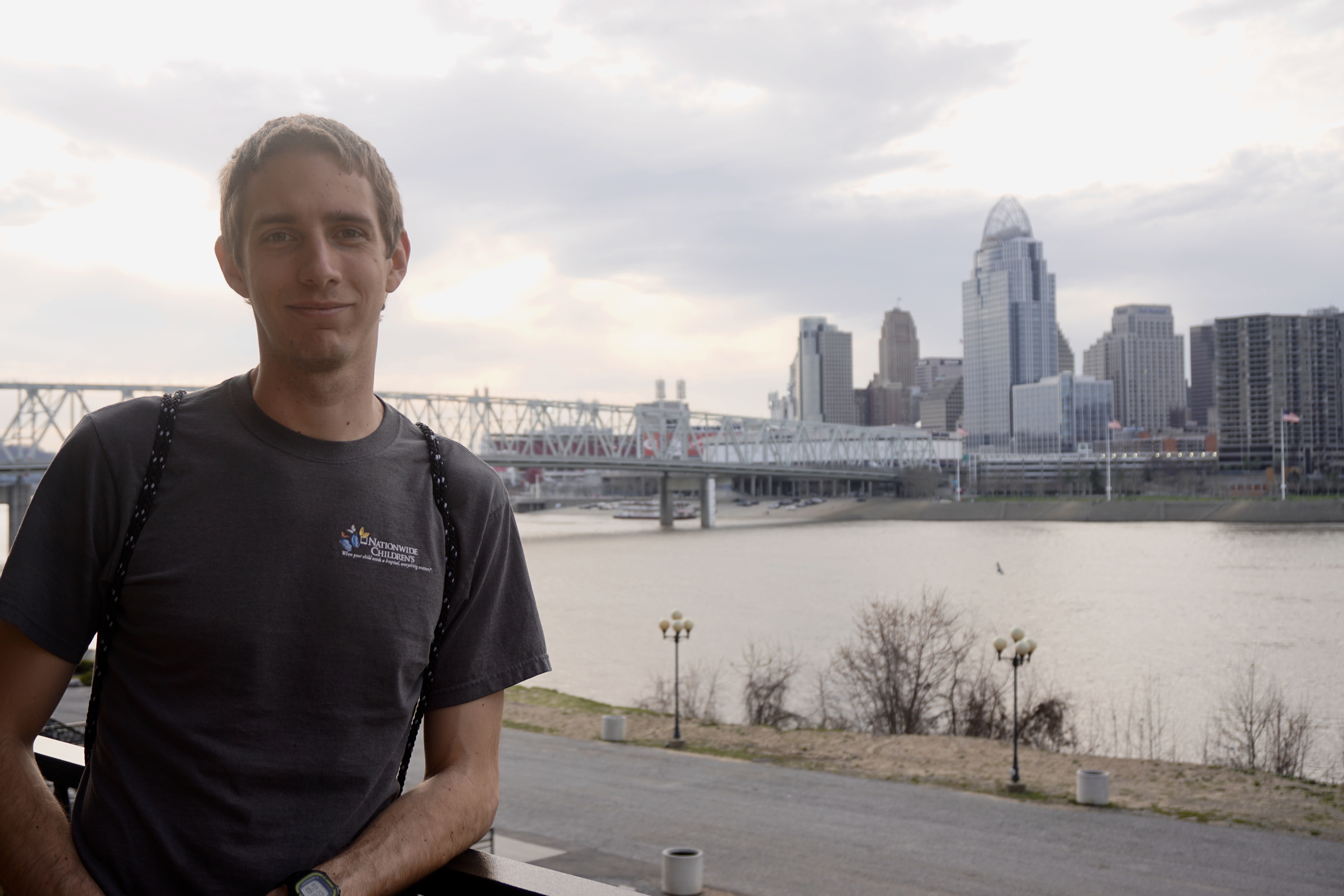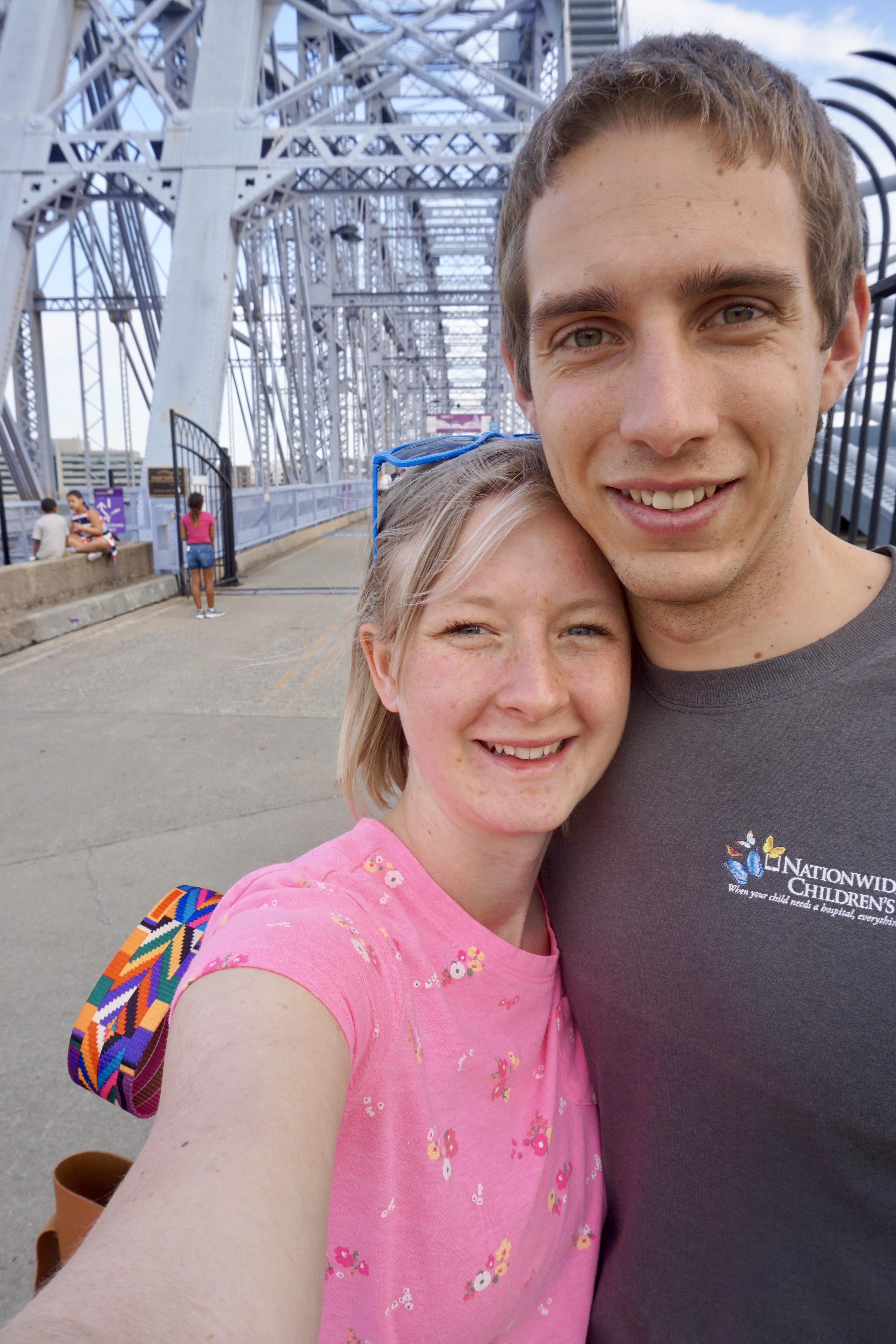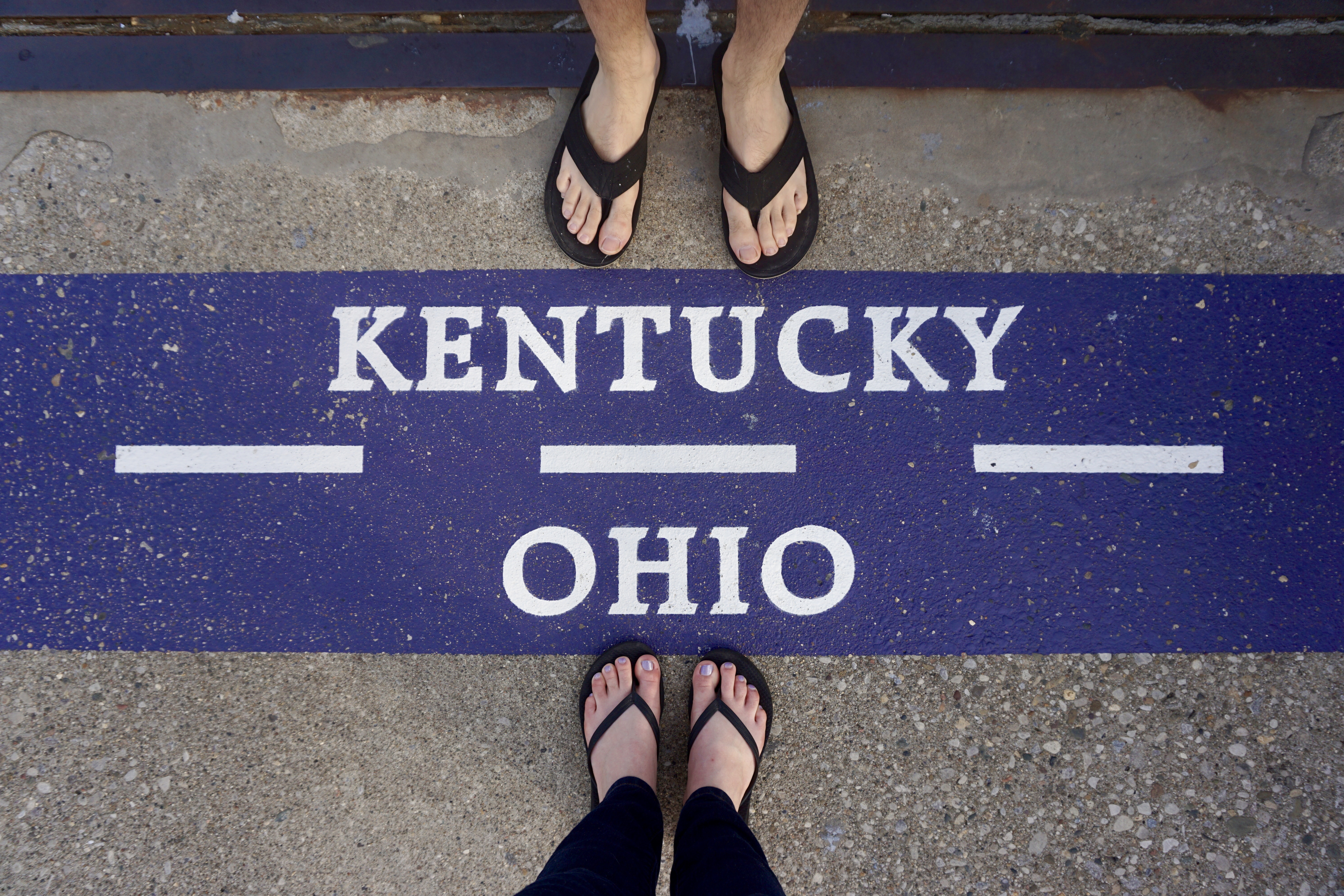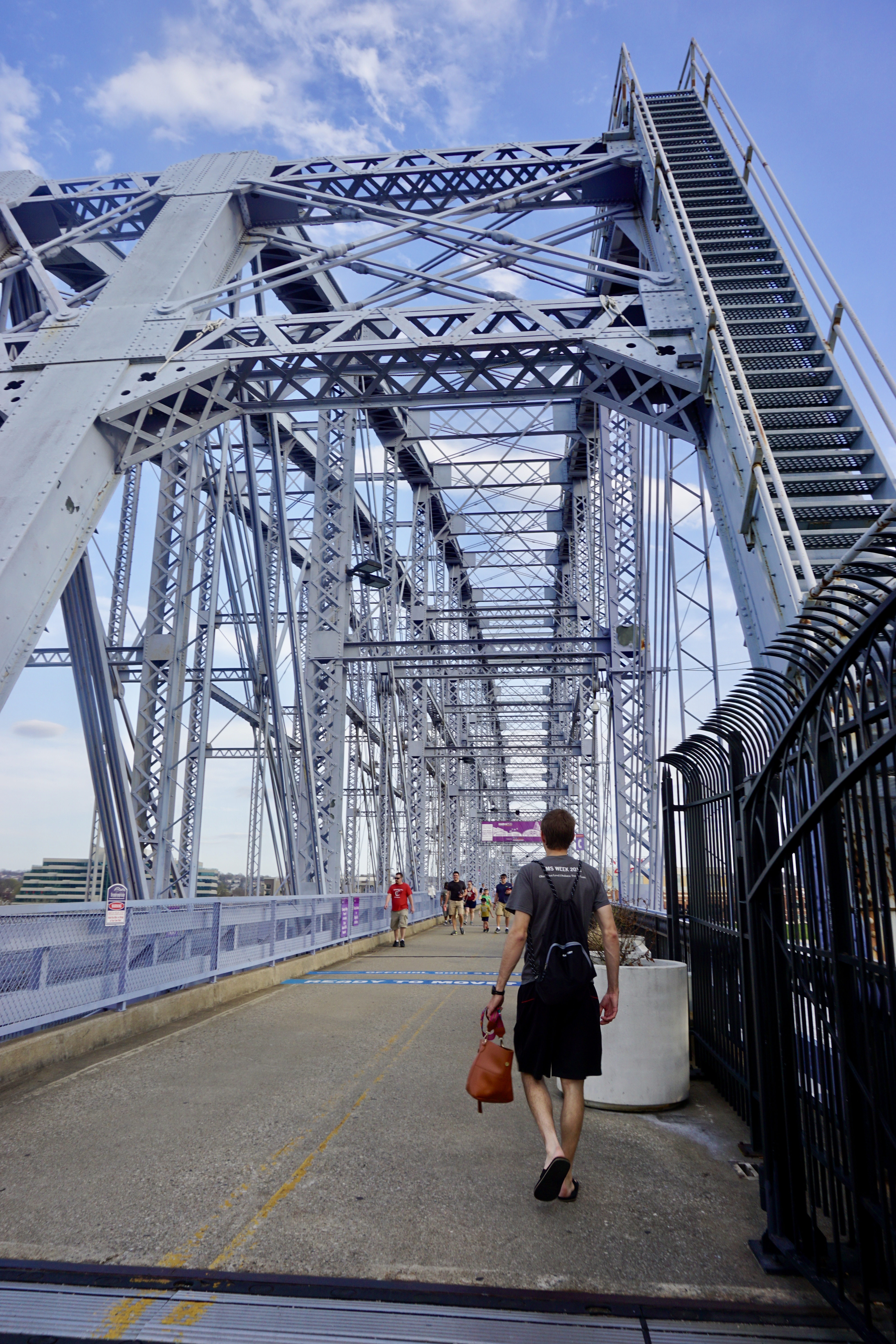 We stopped at the hotel first, then headed to downtown Cincy to find something to eat. We decided to walk across the Purple People Bridge into Newport, Kentucky to find some food to eat. It was a GORGEOUS 75 degree day and the perfect weather for a walk across the bridge.