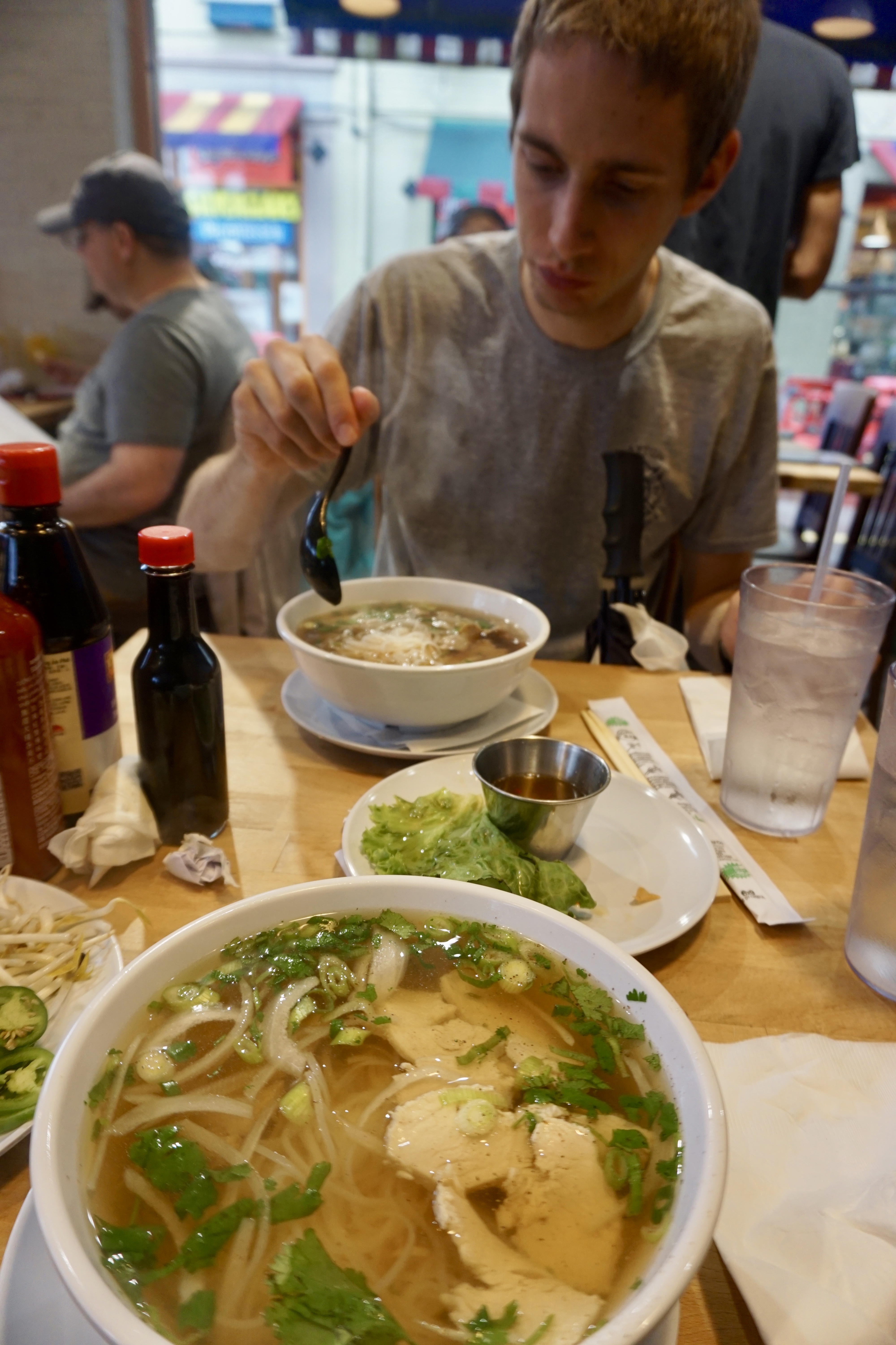 Us! After walking all around Findley Market I was done for the day. Just done. We needed lunch but I was just dragging and wanted to climb into my bed at home. It was raining and so we ducked into a restaurant that appeared to have no name- we just wanted to see what it was. We were whisked immediately to a table and seated when we found out that the restaurant sells Pho. I had no idea what that was, but my life is forever changed.
