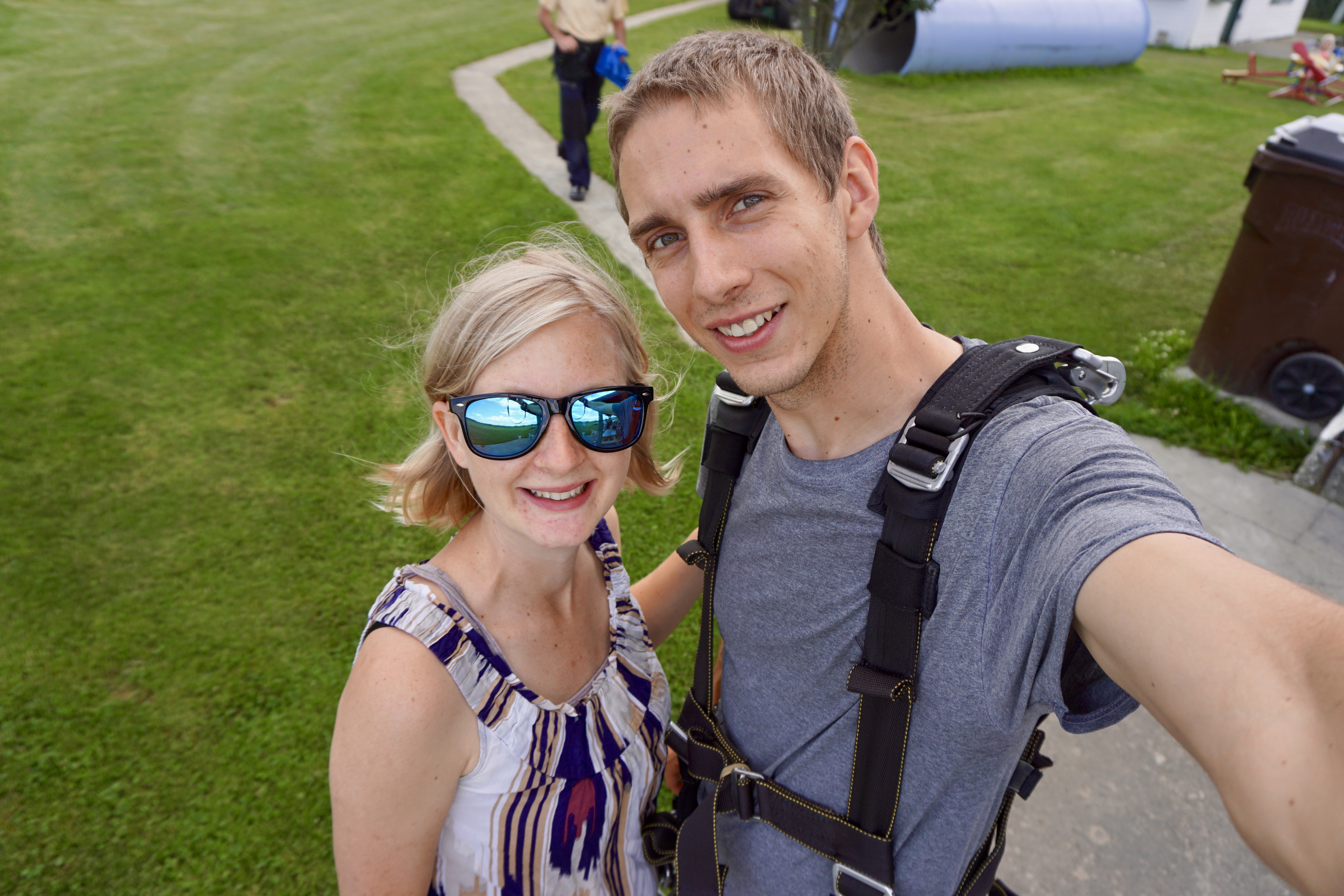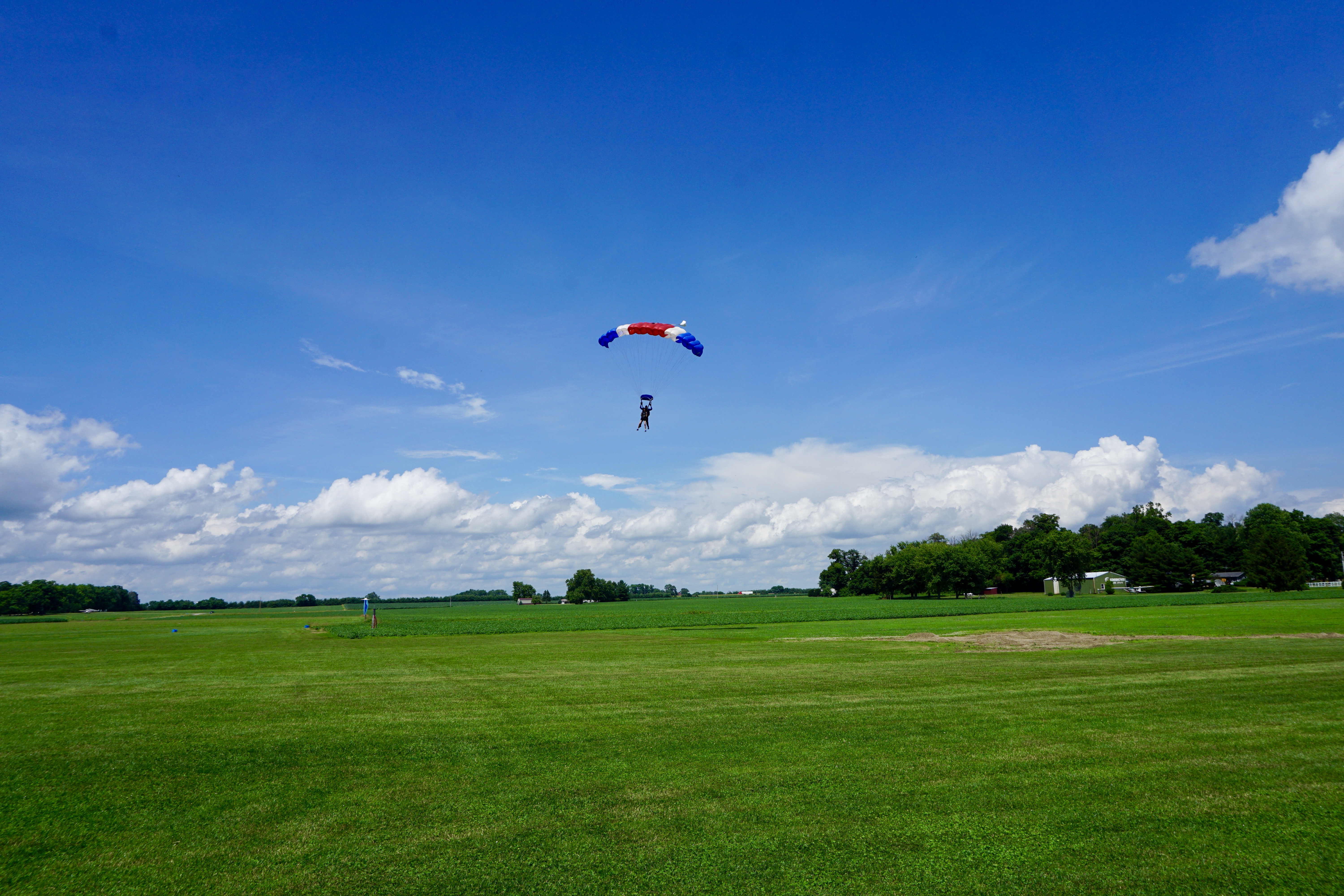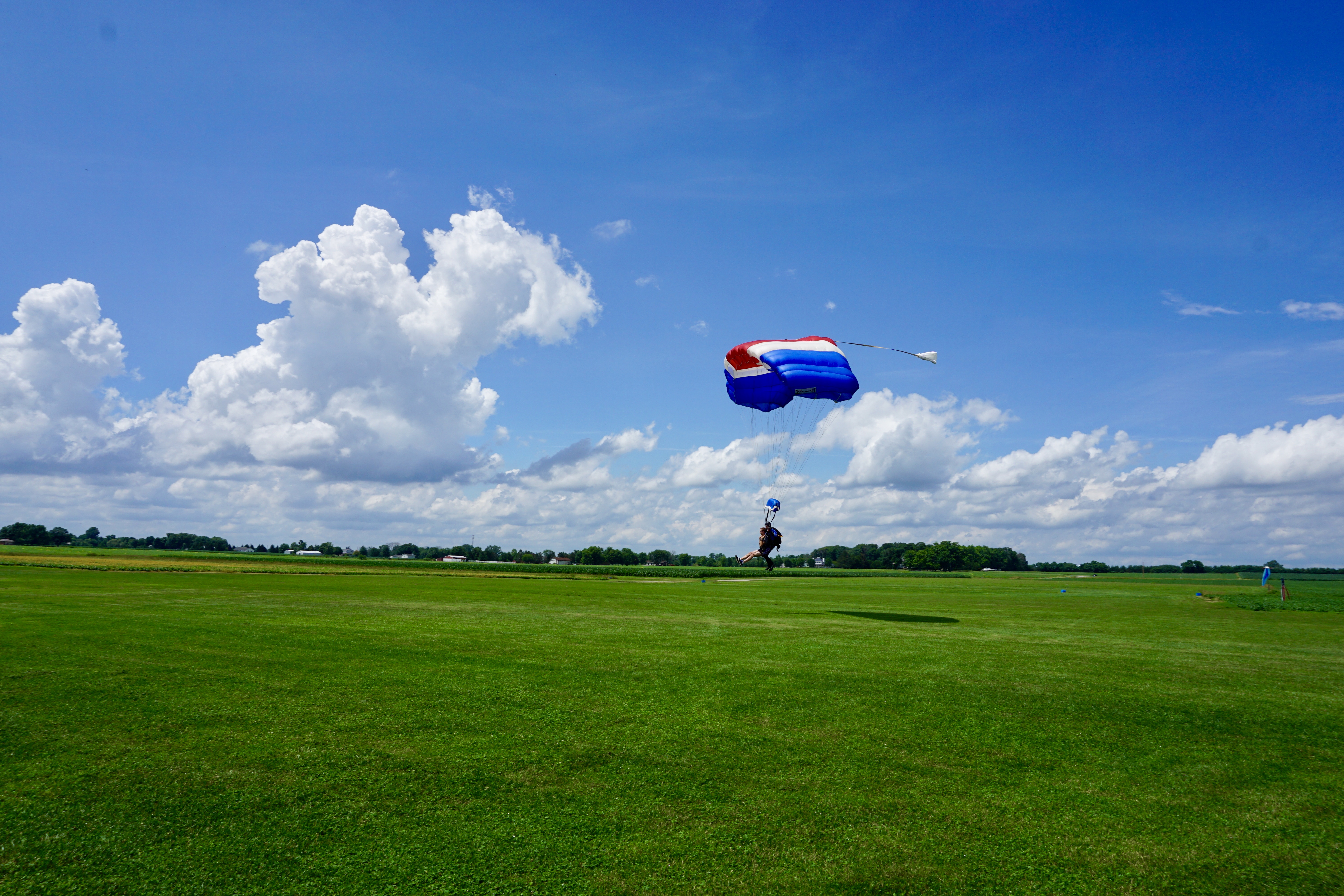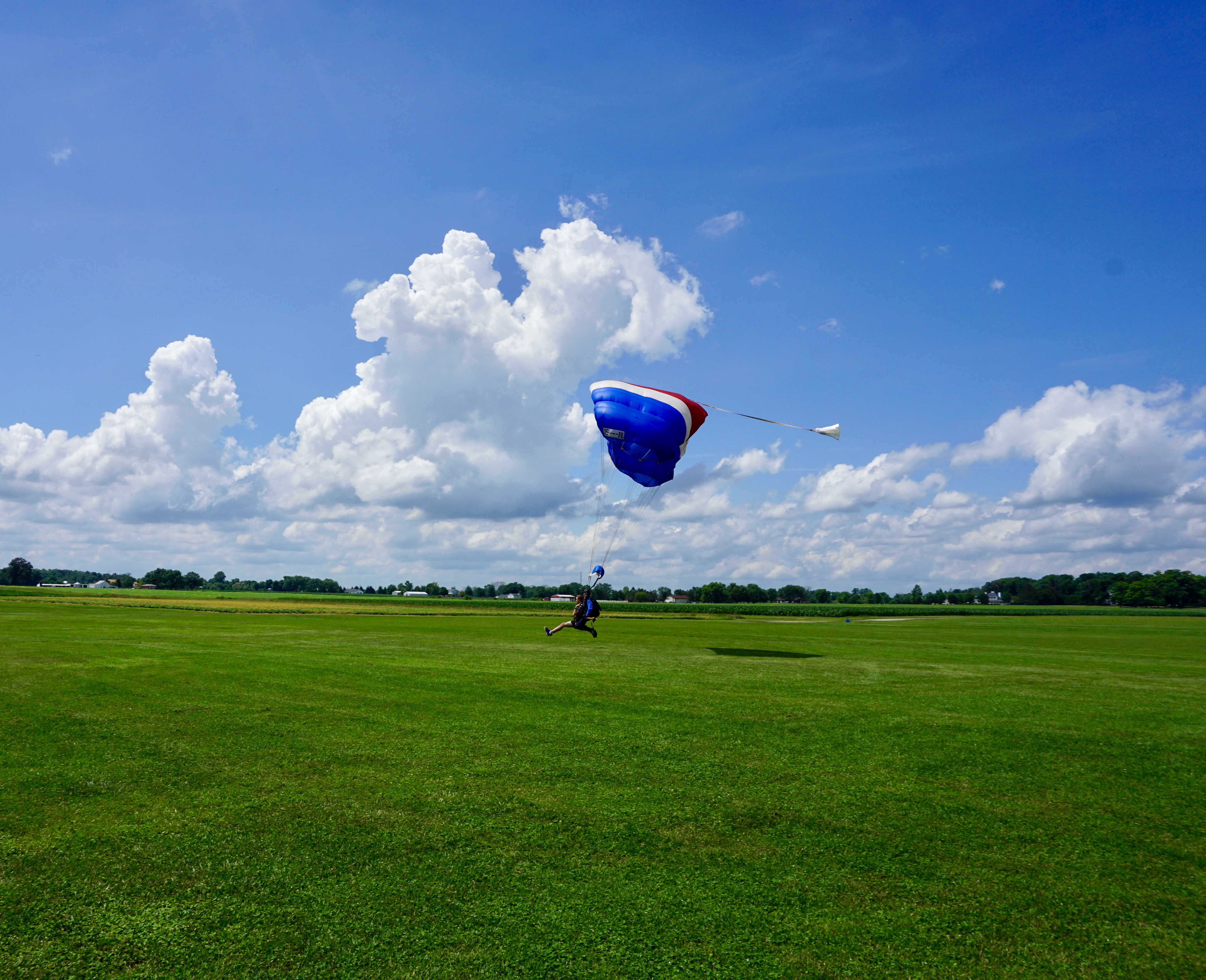 While we were waiting, another woman jumped and right then a big storm cloud blew through. They jumped through the rain and the wind blew them way off the landing strip and they landed in a nearby soybean field. LOL. It wasn’t the best thing to watch right before skydiving, but the lady was perfectly fine and they still had a great and safe landing- just way off target haha.