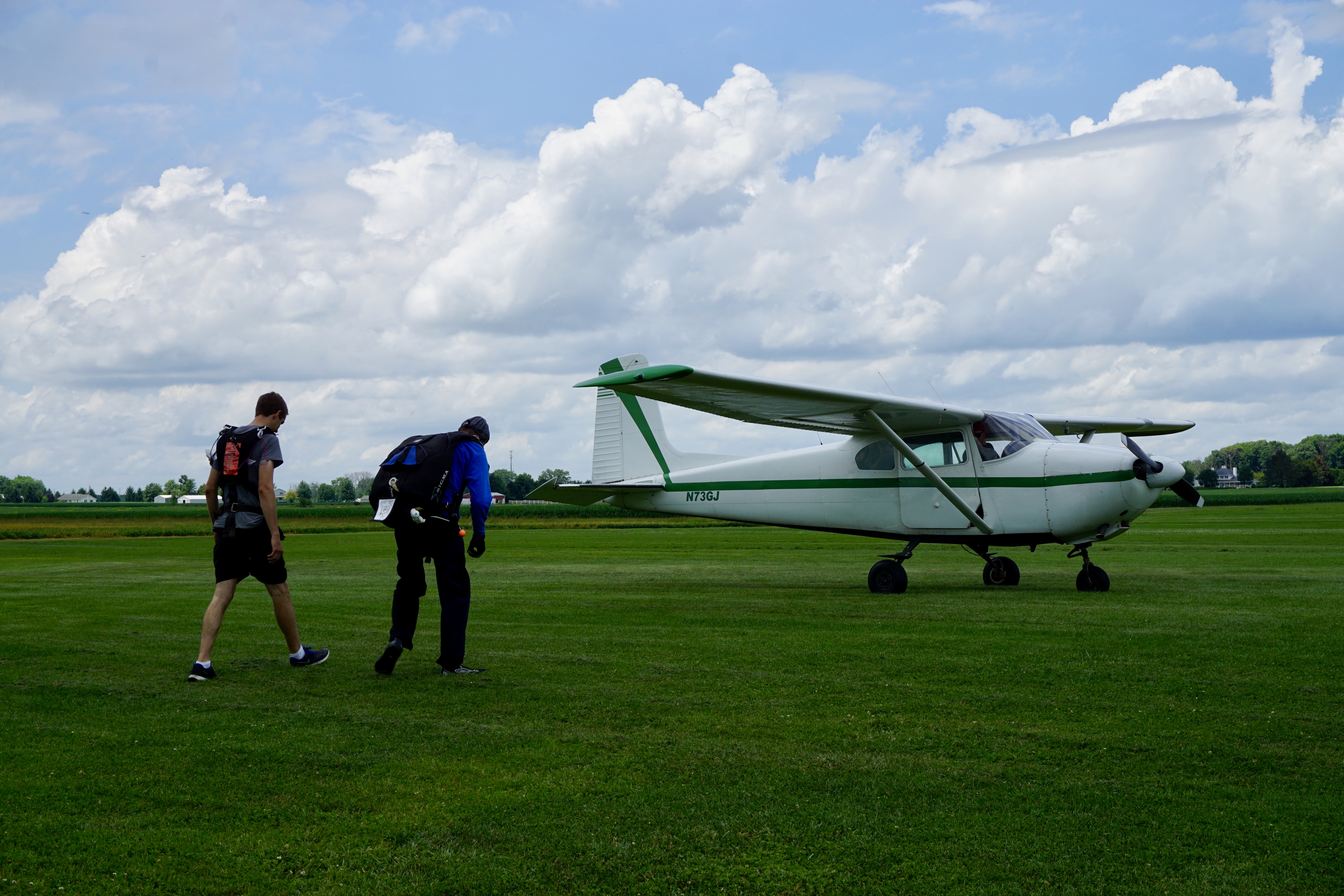 I believe that Skydive Greene County has several planes, but since it was a slow Wednesday afternoon, they only had one plane going up and down. There were a few other skydivers there, but Theo went first since he was a single jumper. He went up with the pilot and the instructor (who was actually the owner), and came down with the instructor.
