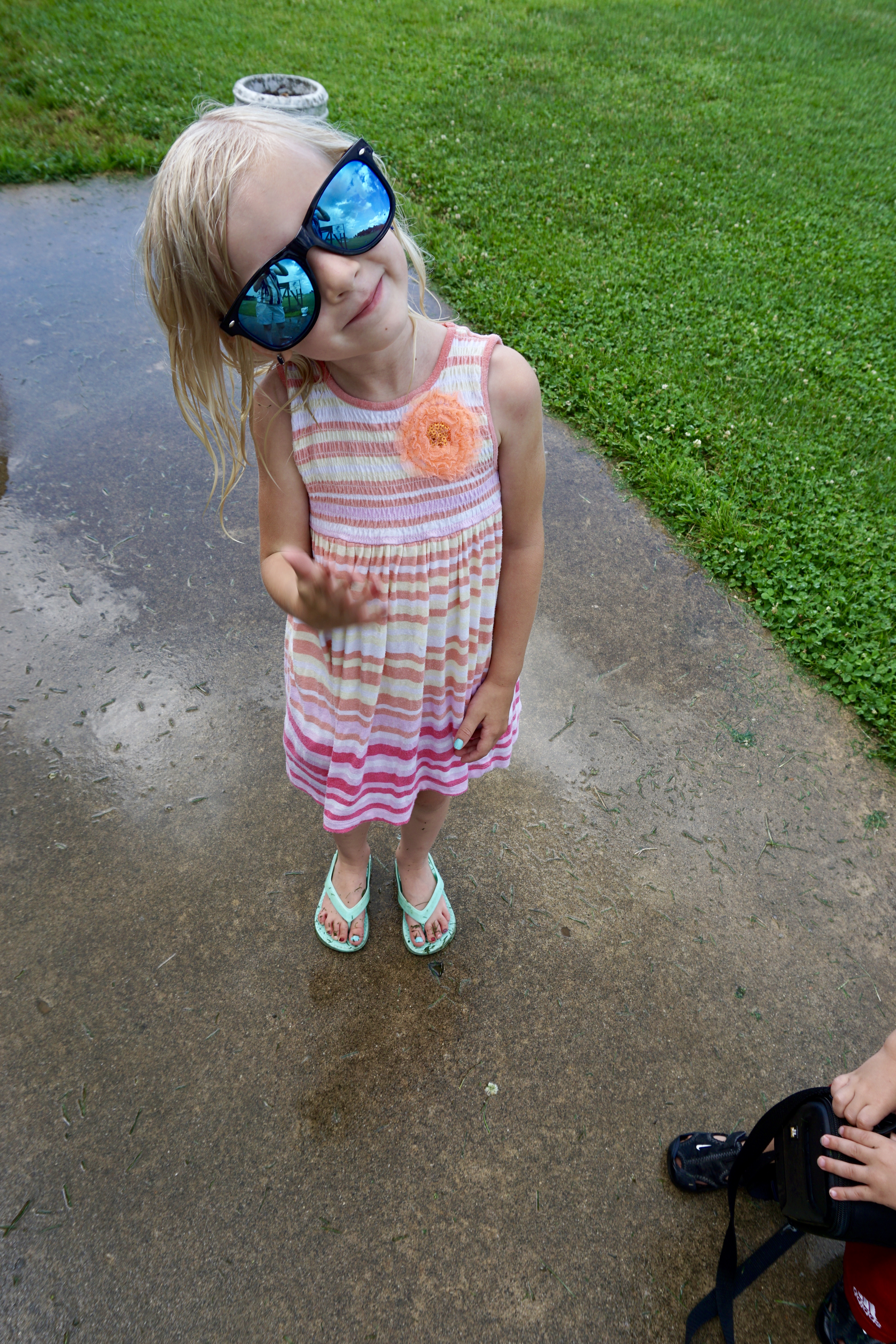 My kids did pretty well waiting, but they were starting to get really impatient about waiting for Daddy to jump out of an airplane. Tera was a little bit mad that she wasn’t allowed to go yet. We have shown her some videos of people skydiving and she is very convinced that she wants to go. We told her she can go for her 18th birthday- with Daddy. I will be staying on the ground, thank you very much. Theo says he has 14 years to change my mind.