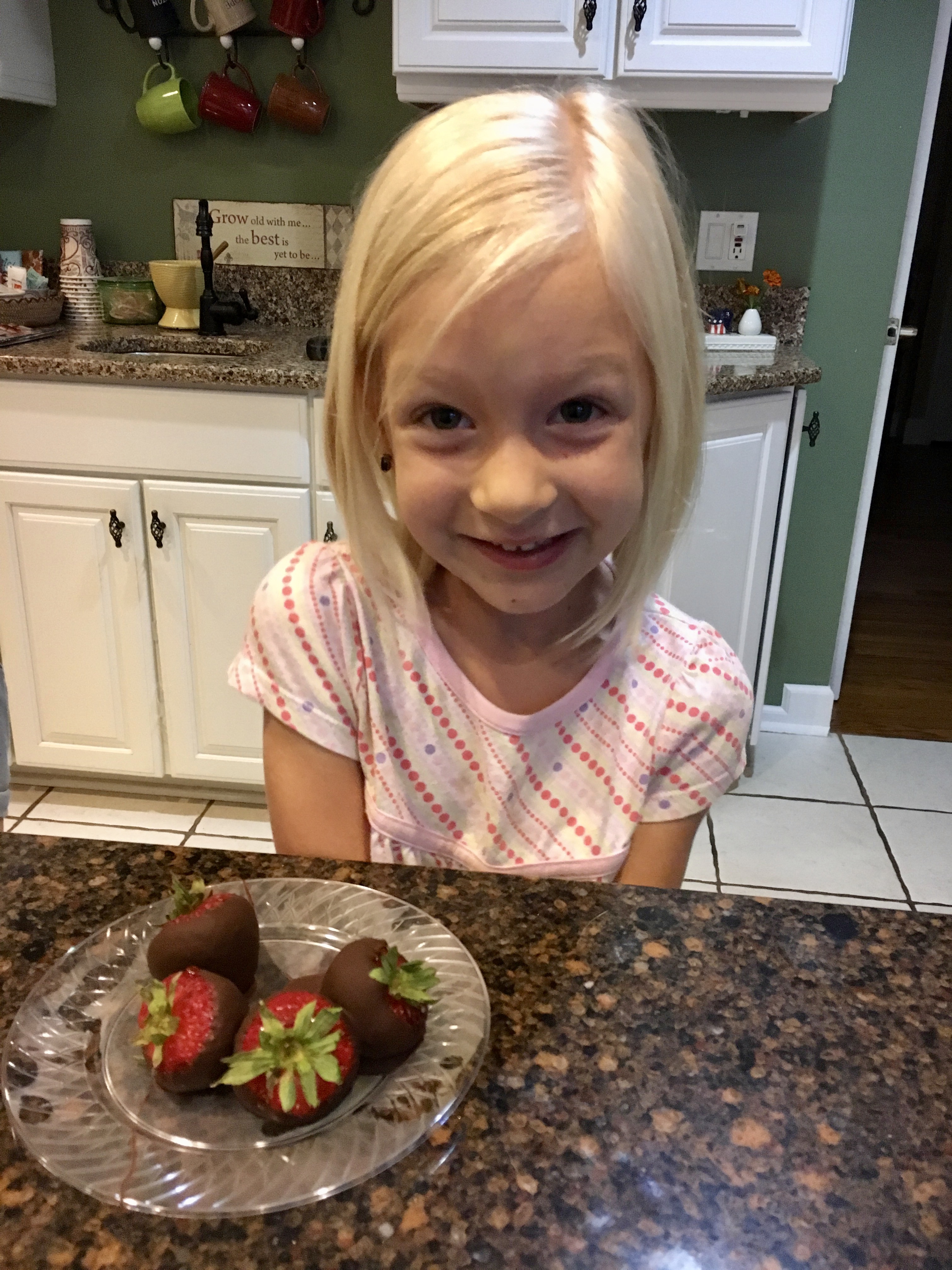The next morning dawned bright and early and it was a very special day for a very special girl!!! Tera turned FOUR! We saved four chocolate covered strawberries from the night before and she got to eat them for breakfast (she shared with her brother, too).