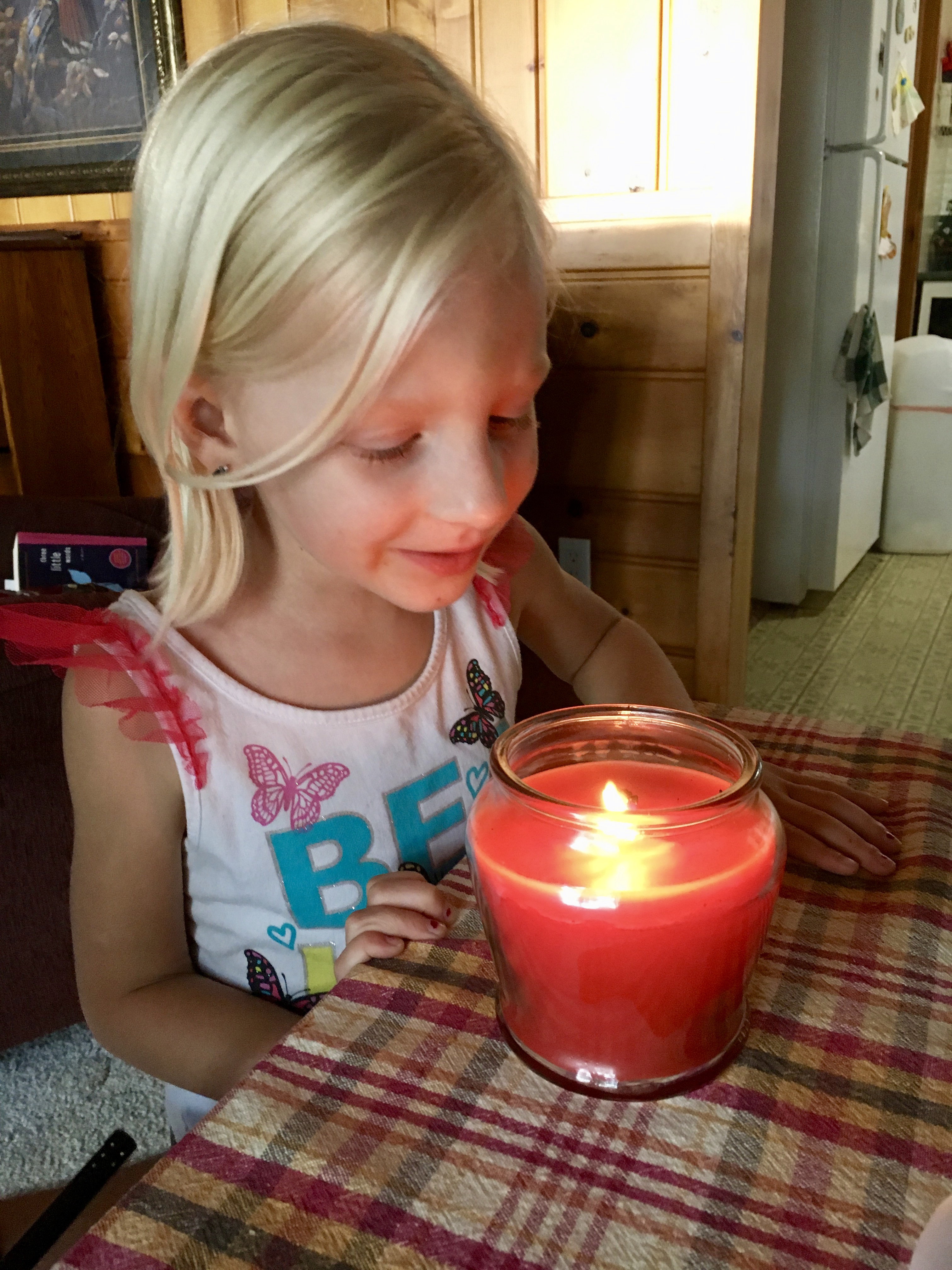 We celebrated Tera’s fourth birthday with pizza and some frozen cheesecake we found in the freezer. 😉 We couldn’t find any birthday candles, so we had Tera blow this one out four times. She loved it.