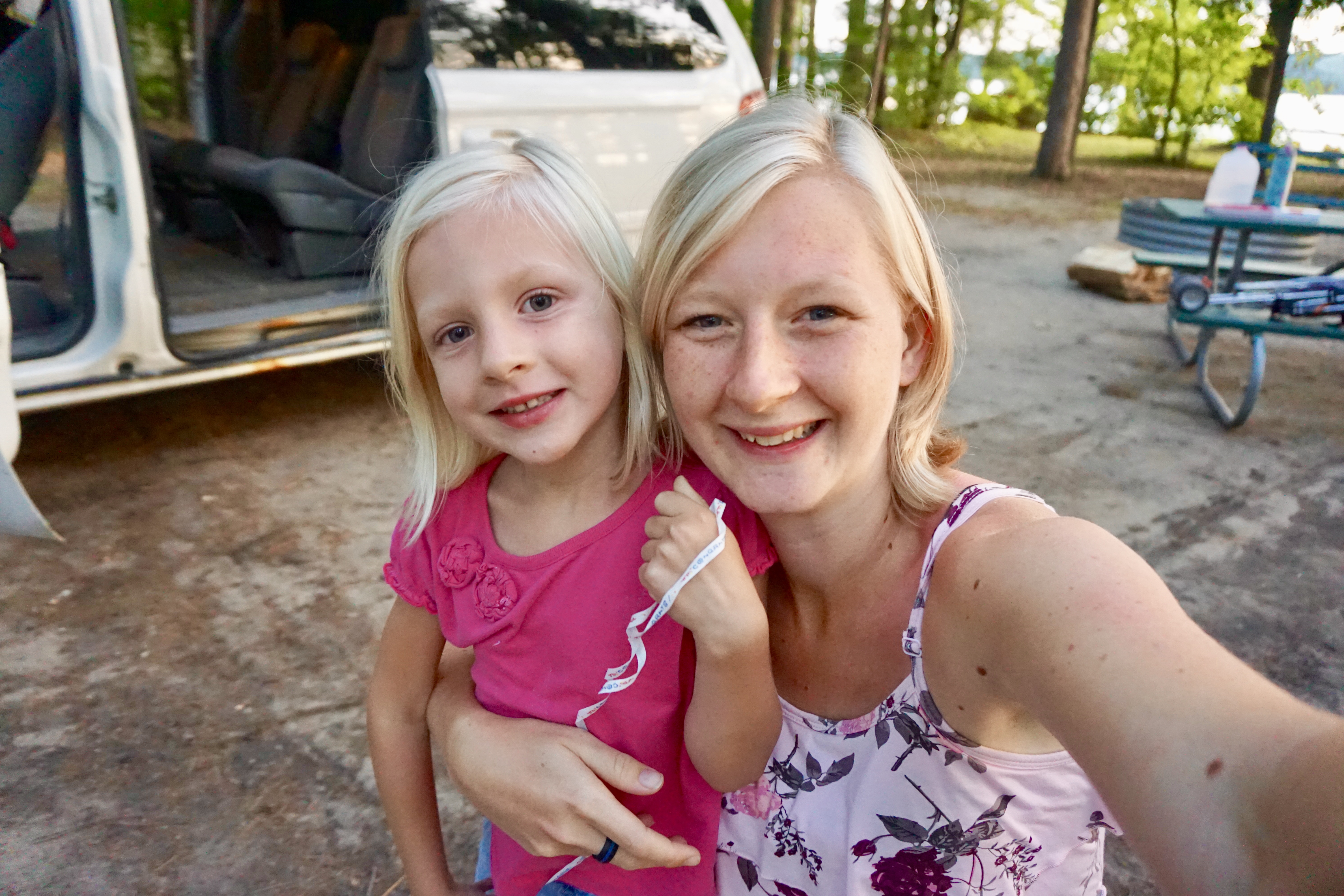 Eventually, the kids fell asleep around 10:30. Theo and I climbed into van and found that it wasn’t horribly uncomfortable. It was better than sleeping on the ground in a tent! It got pretty hot, so Theo rolled down the front windows and cracked one of the doors a bit. I thought the bugs would be terrible, but they weren’t! Around 1am, Tera started thrashing around and screaming her head off. She was awake, but not awake and we just could not figure out what was wrong with her. This went on for nearly an hour. Since Kiah had had a runny nose and sore throat for a few days, we figured she was coming down with something and gave her some Tylenol, but it didn’t seem to make a difference. Once we convinced her to stop thrashing and flailing and crying, we all went back to sleep. If it hadn’t been for that random episode (a nightmare? A tummy ache? A sore throat?), the night actually wouldn’t have been all that terrible.