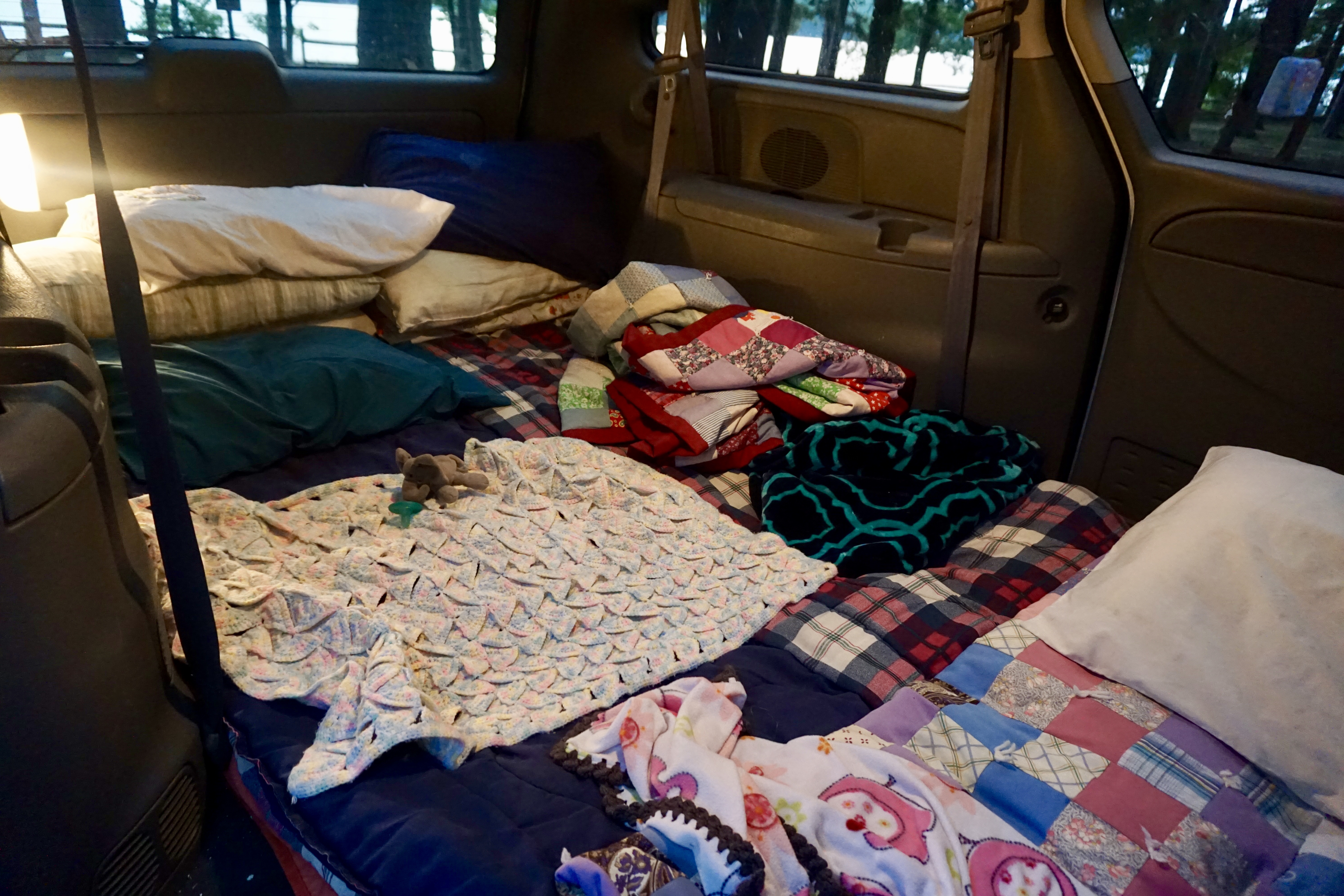 We stuffed all of our things, including the two carseats into the two front seats and all four of us slept in the back of the van on a mountain of blankets and pillows. *no children rode in the upside-down, unsecured carseats. I feel like I have to mention that because inevitably someone will tell me I’m parenting wrong by the state of the carseats*