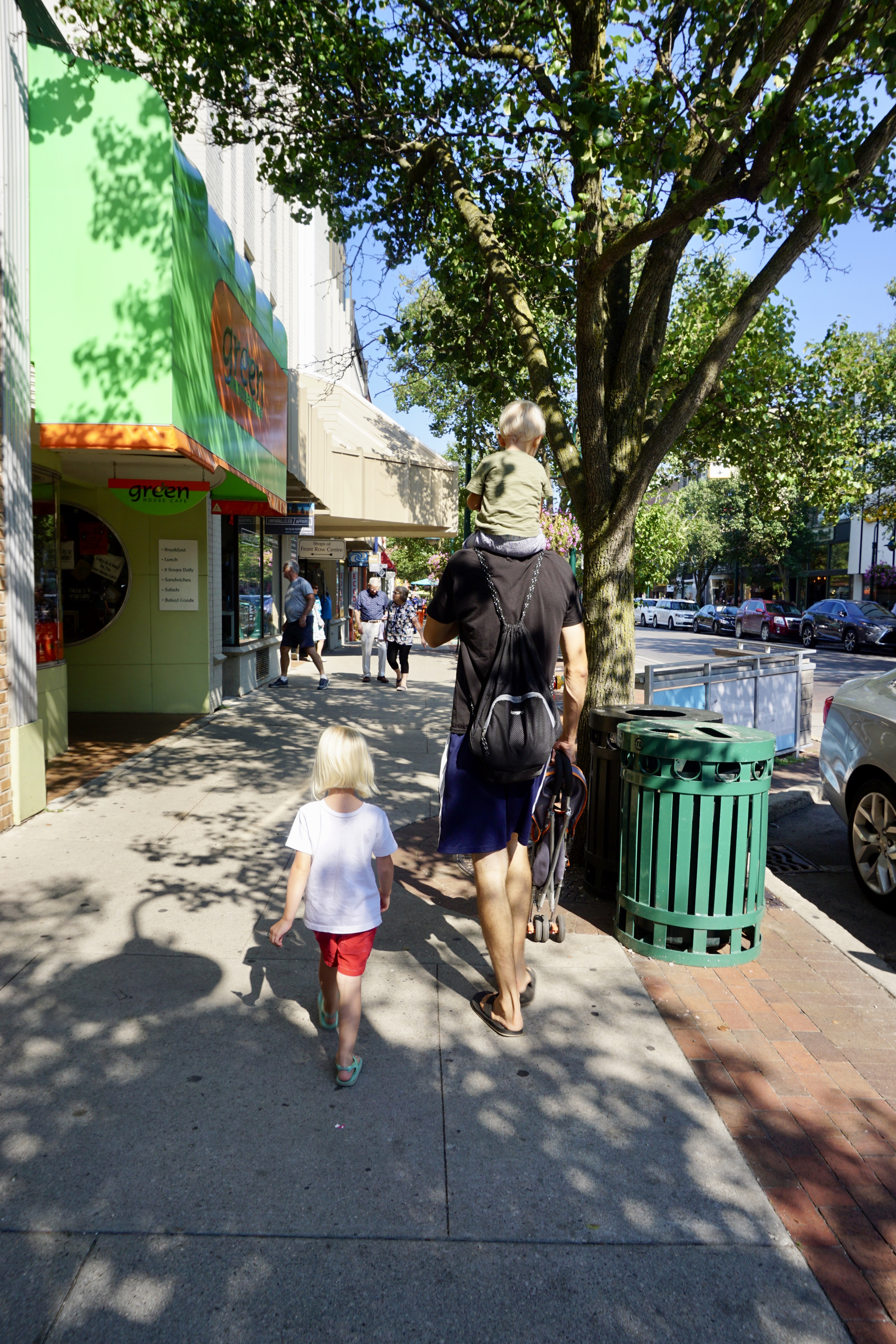 Walking down the street. Does anyone else have kids in the stage where they still kind of need a stroller, but still want to walk half the time? And here you find yourself as a parent with two kids slowly lollygagging along while you push an empty stroller and your kids initiate WWIII over who gets to push the empty stroller next? No, just us?