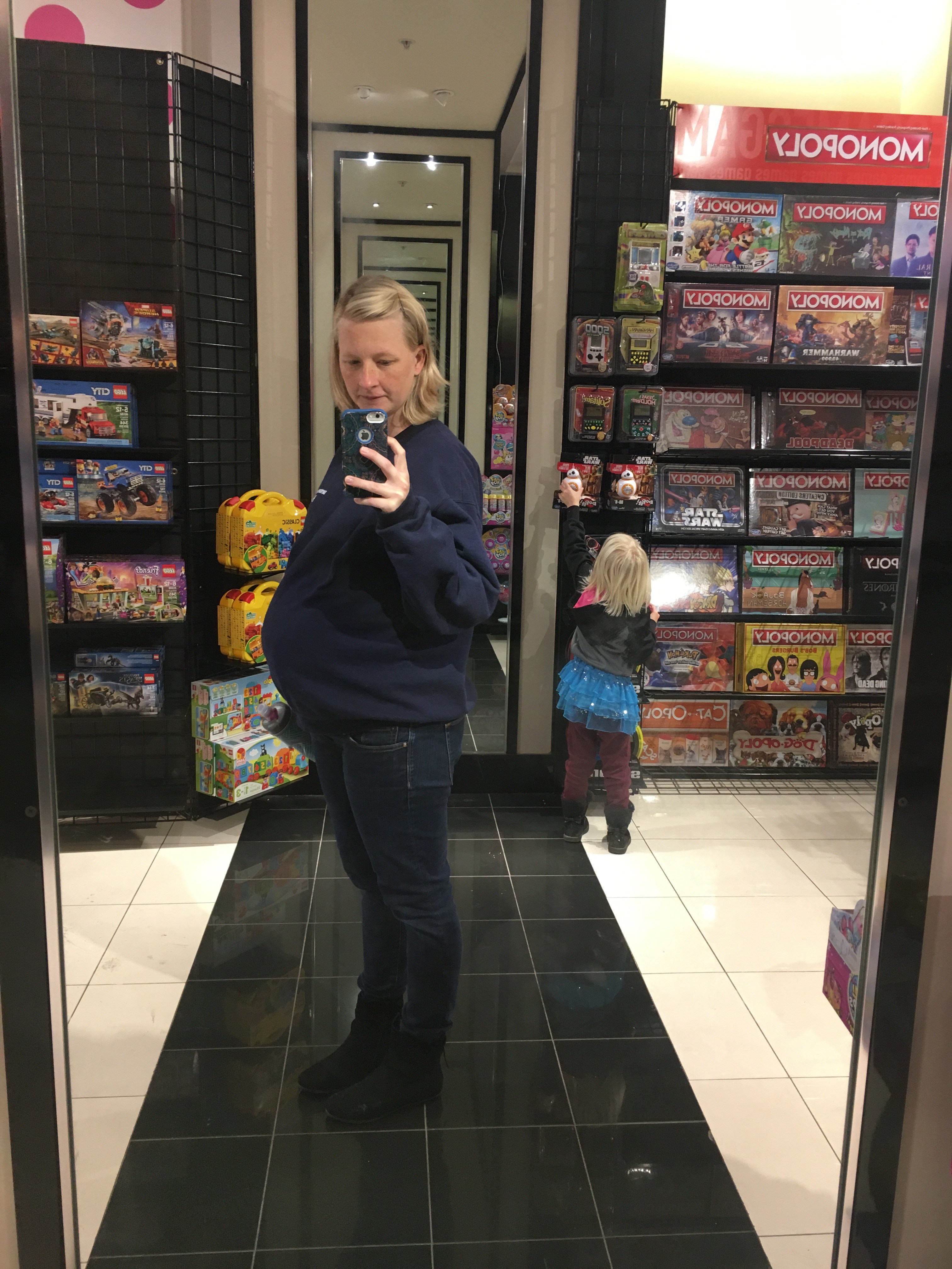 It’s been rainy and cold and yucky, so the mall walking has begun again! I had to crack up and take a picture of myself because I caught a glimpse of myself in this mirror right after walking past a Victoria’s Secret. LOL. Can’t even compare because it’s like two entirely different species at this point.