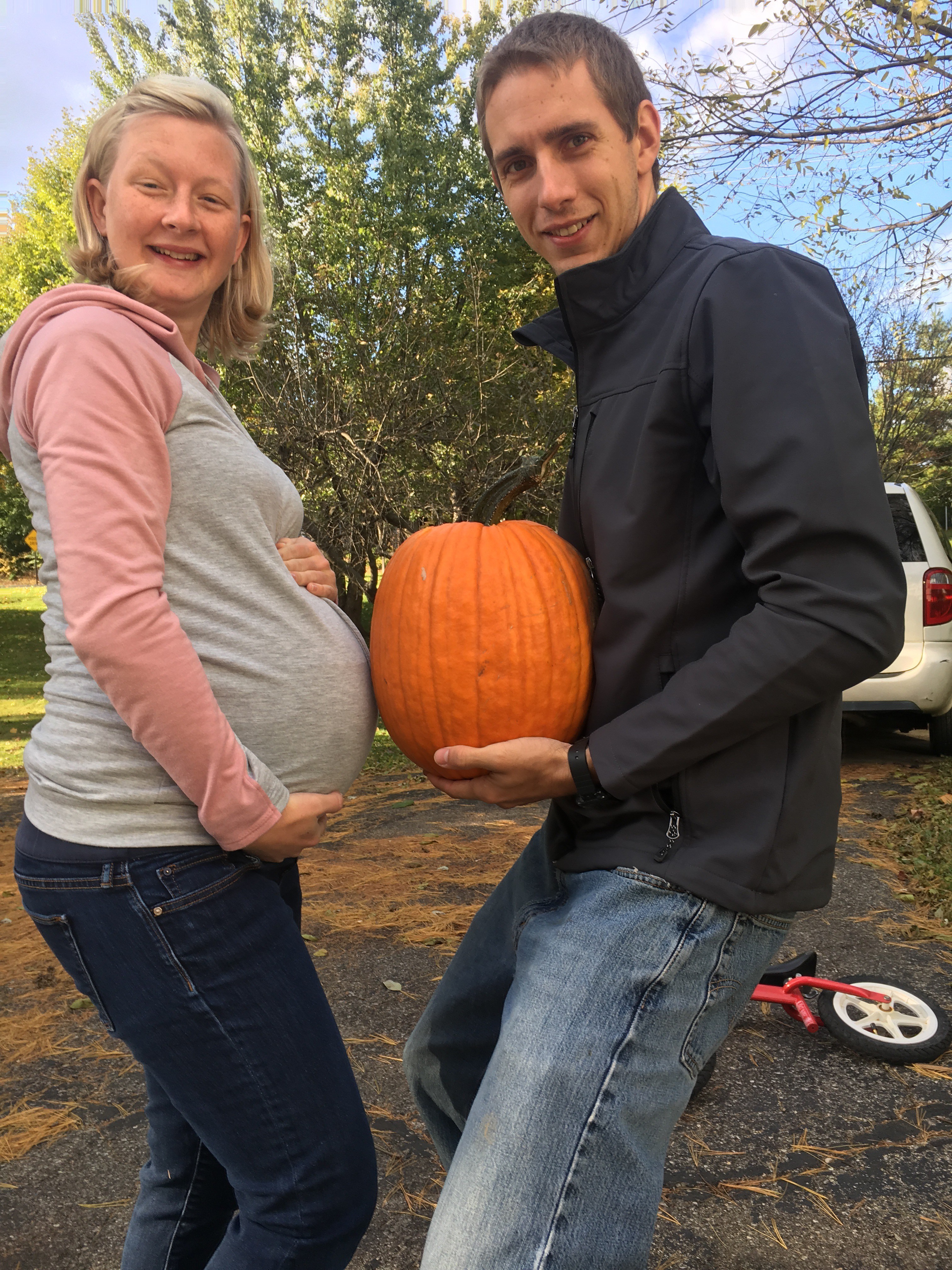 The last activity we did this month was to carve up a pumpkin! Tera really wanted a flower, and since she was the only one with an opinion, that’s what we have! But first…mandatory pumpkin/belly comparison pictures….because we just have to when I’m 103 weeks pregnant (just 37, but at this point it feels like the same thing).