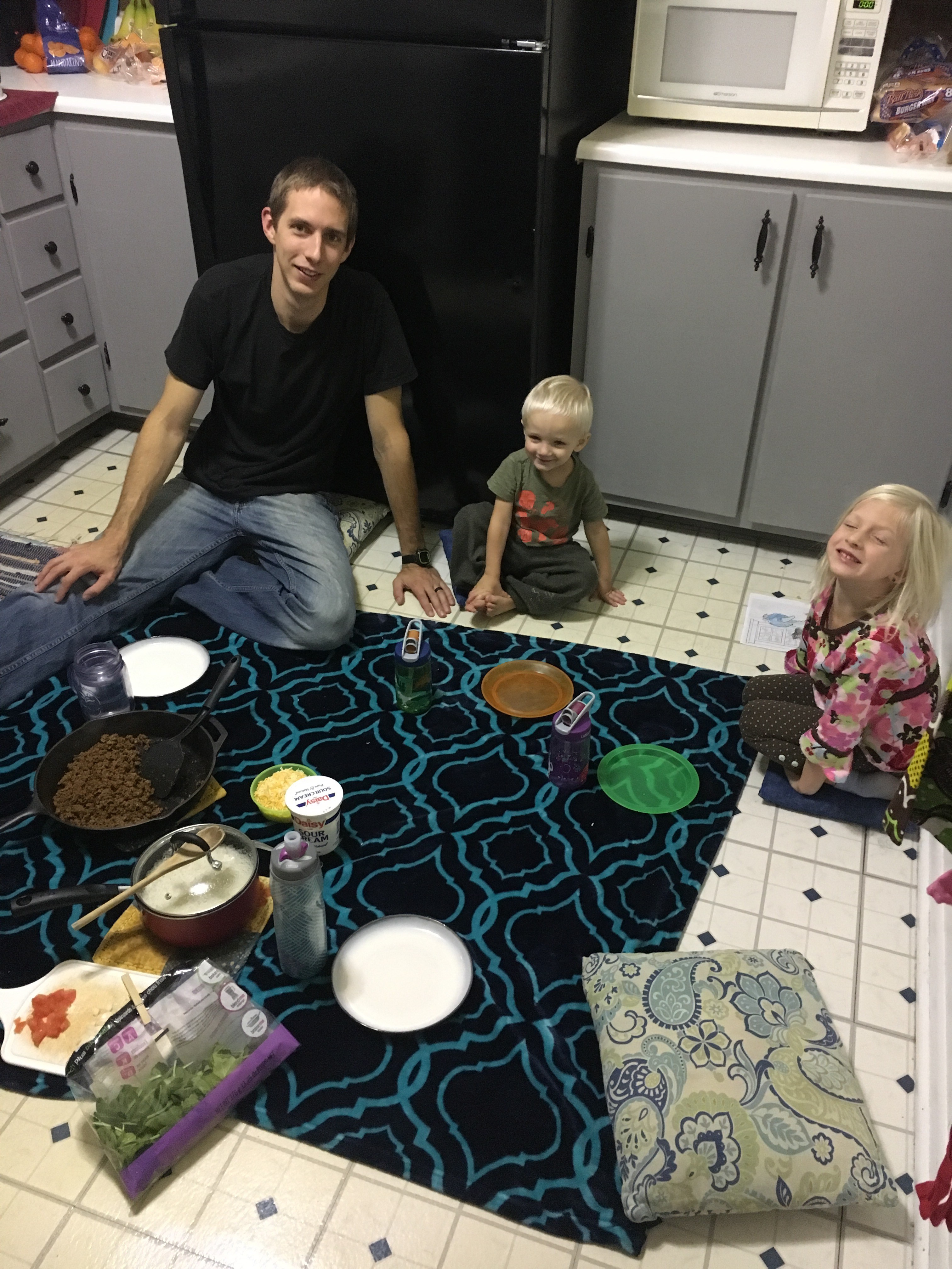 We had a picnic dinner on the kitchen floor…