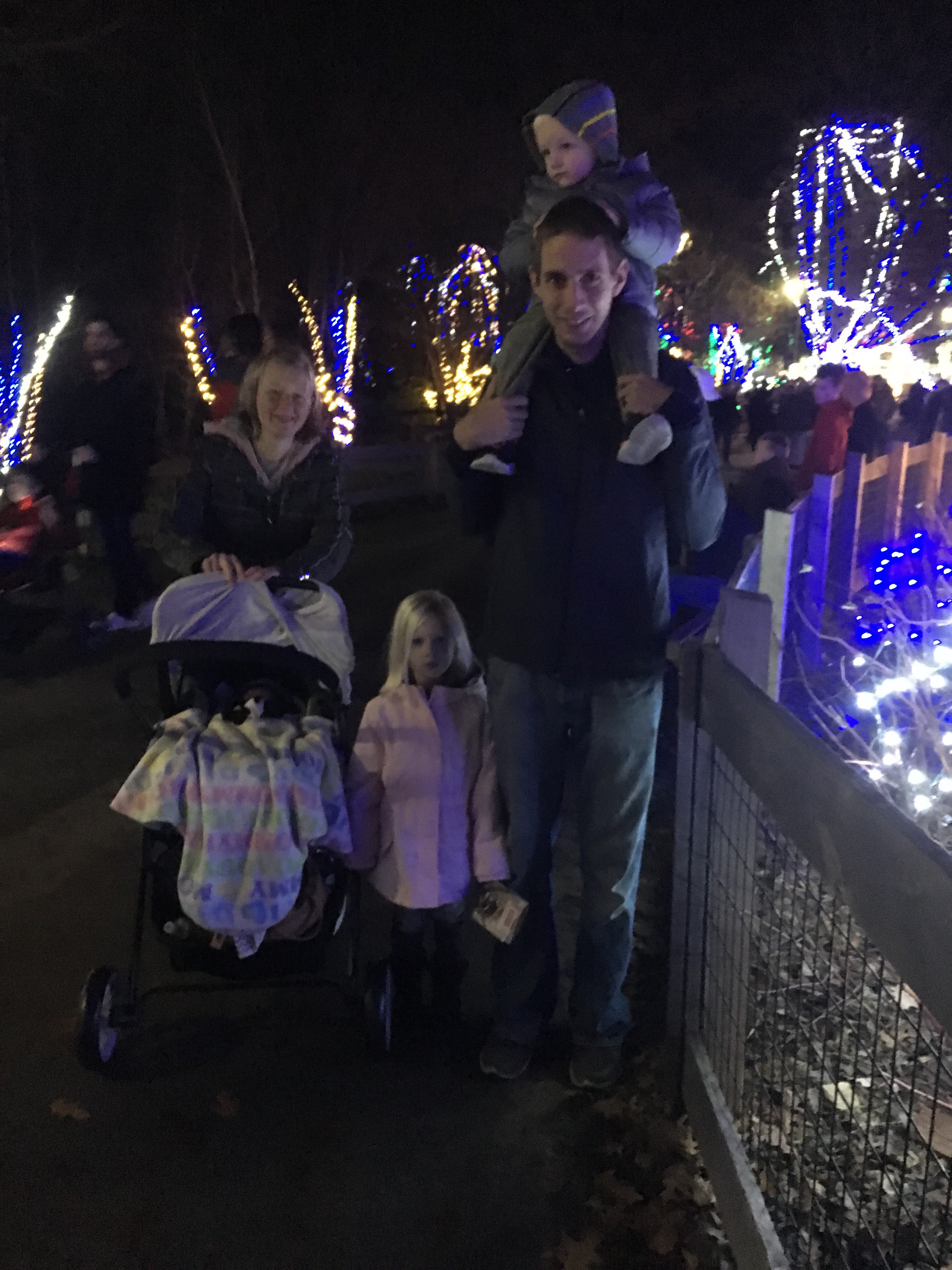 On Sunday evening, I got the brilliant idea to go see the wild lights at the zoo. We weren’t sure what to expect, so it was interesting. The lights were great, but there were no animals to be seen (except the reindeer and the aquarium). It was super crowded and I ended up spending an entire hour in the “nursing station” at the zoo feeding Ezra. Still, it was great to get out of the house and this was probably the last warmish day of the year, so I’m glad we went! I just need to remind myself over and over again that everything takes at least two hours longer with a newborn!!