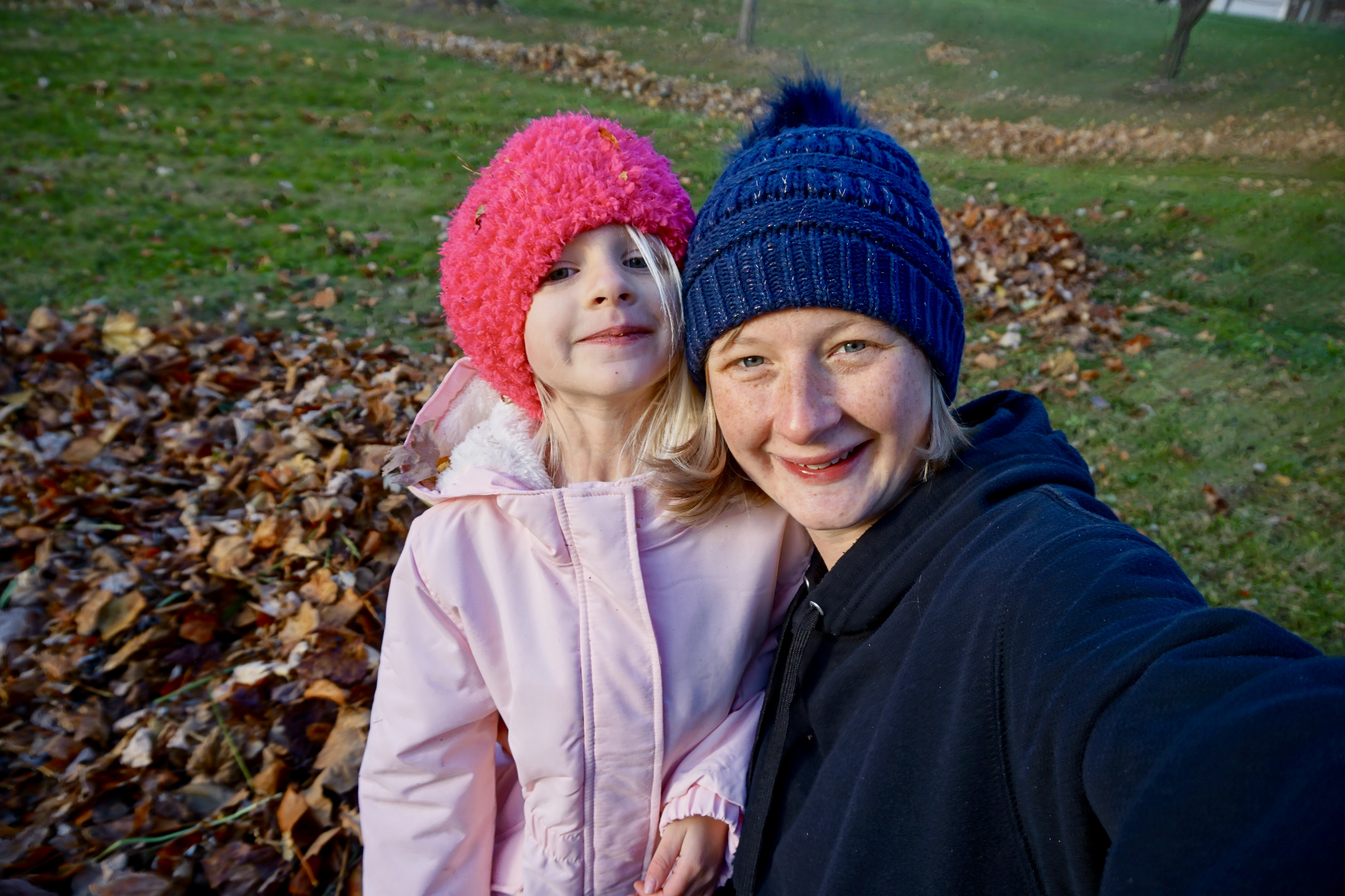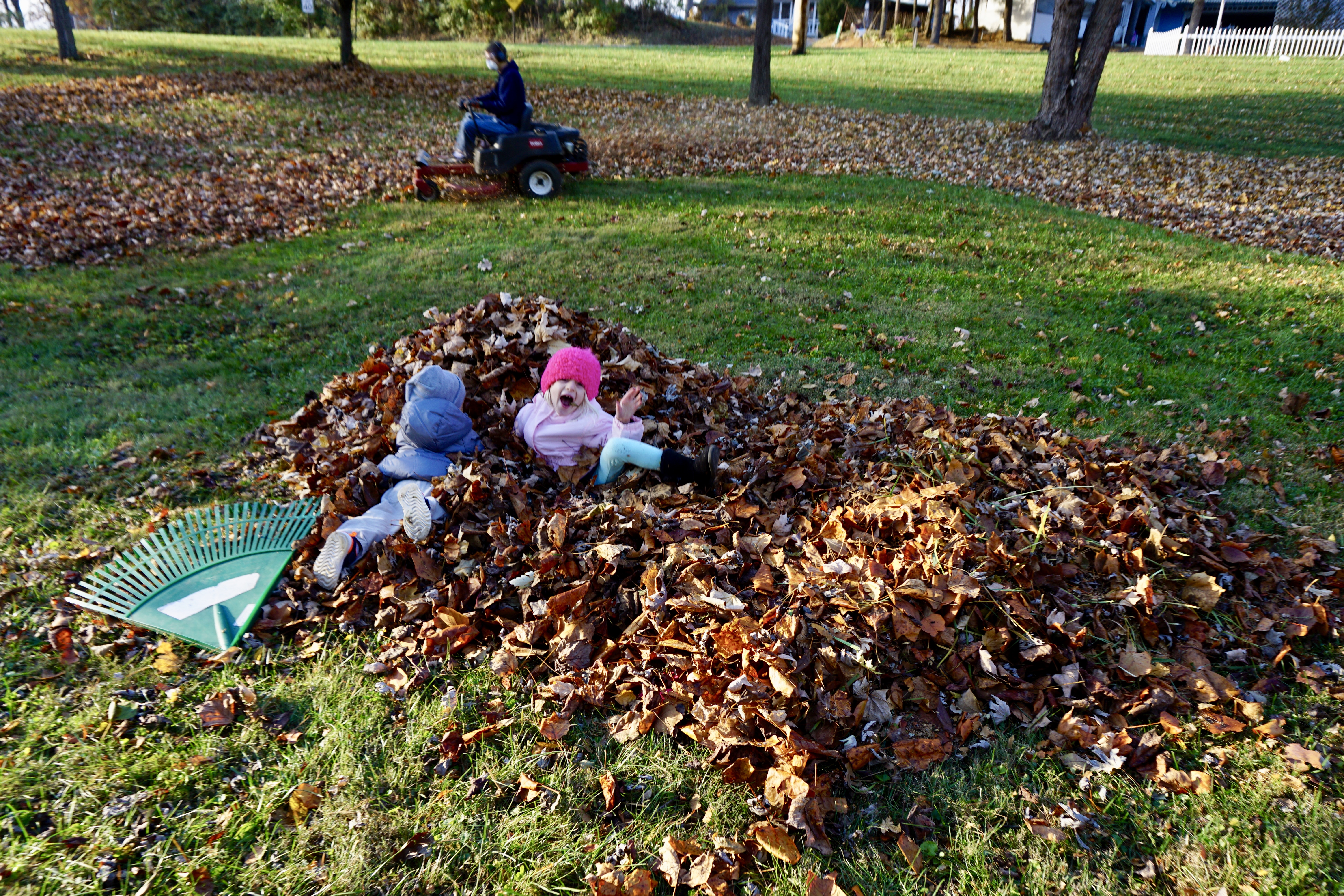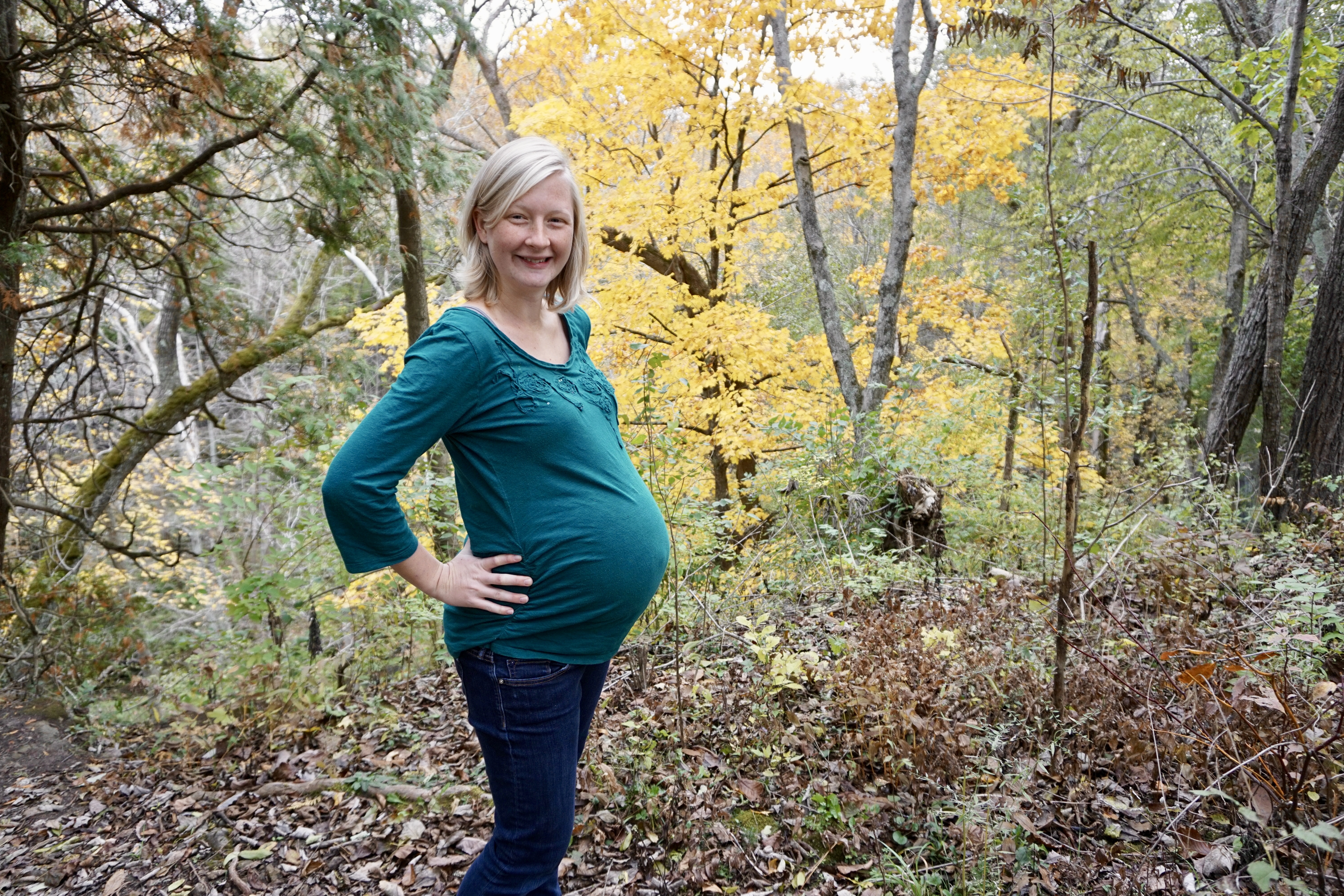 Tera wanted to jump in a pile of leaves, so I figured raking a big pile would either put me into labor…or not.
