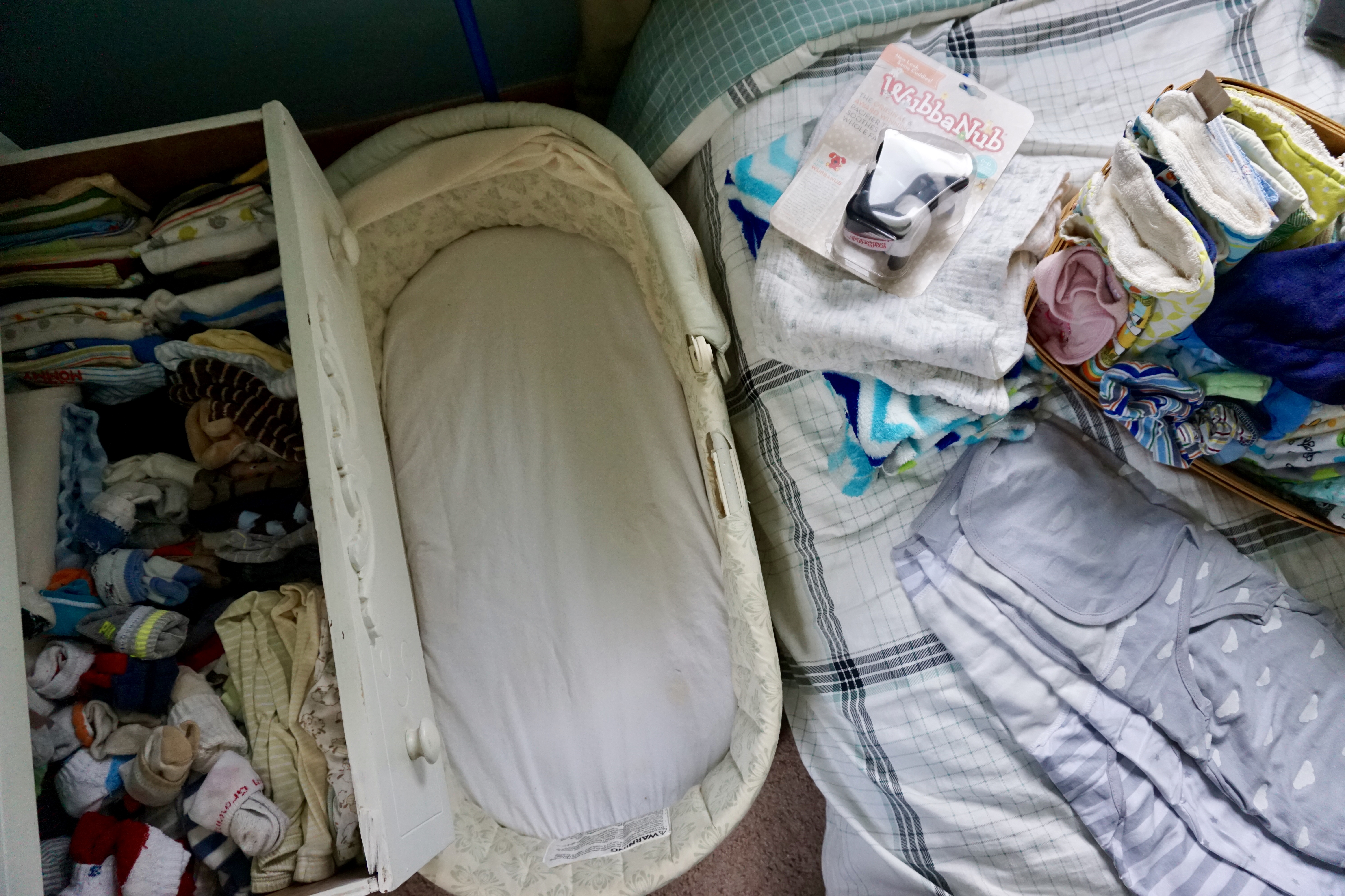 Prior to November, I hadn’t done a single thing to prepare for baby. I was so anemic that I had no energy to do anything at all. Once I finally got my iron levels up, I felt SO MUCH BETTER, so I was able to pull out and organize all the baby stuff. I really wanted to keep it simple this time around. Also, that entire drawer of clothes? Newborn clothes that Ezra never even wore. LOL.