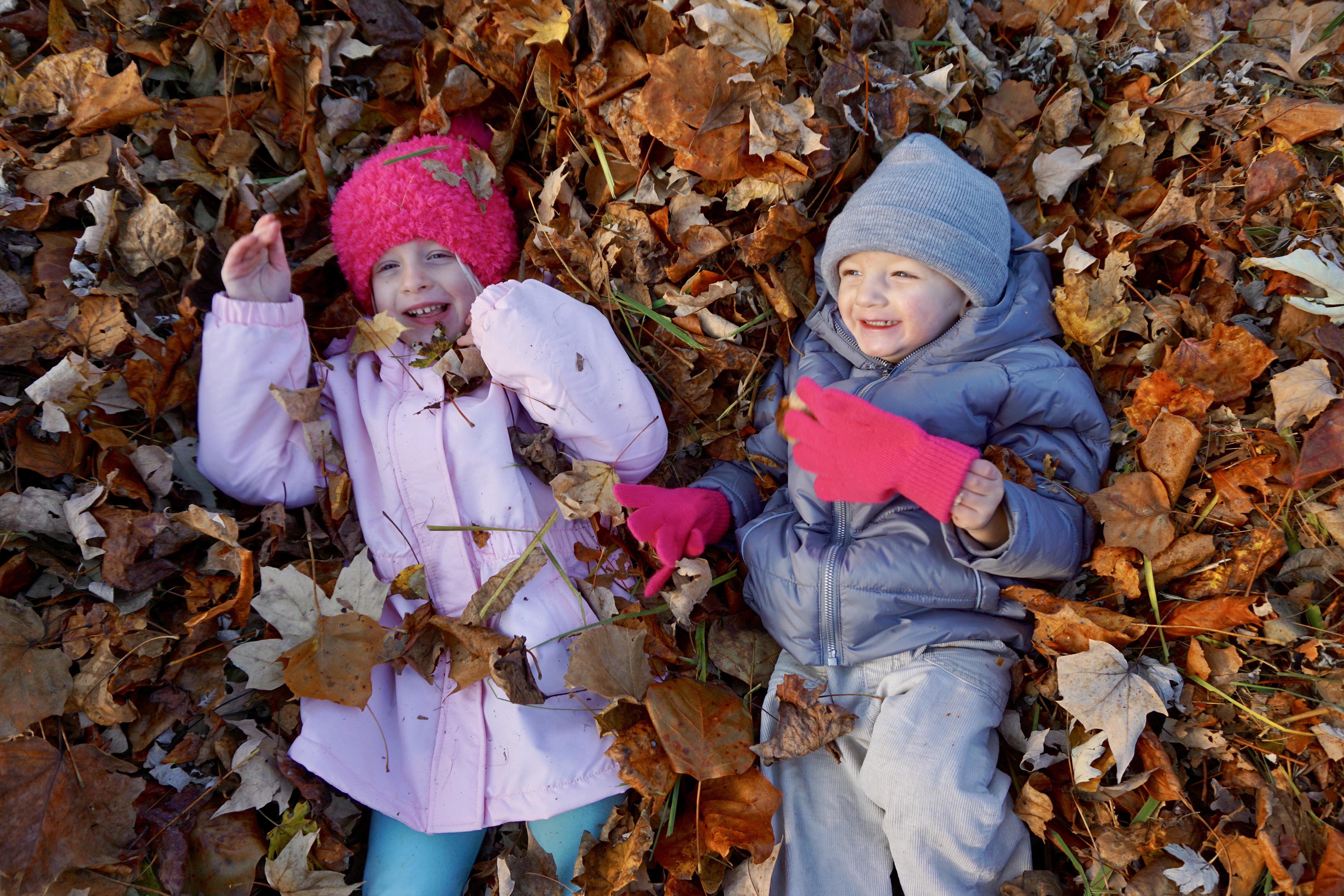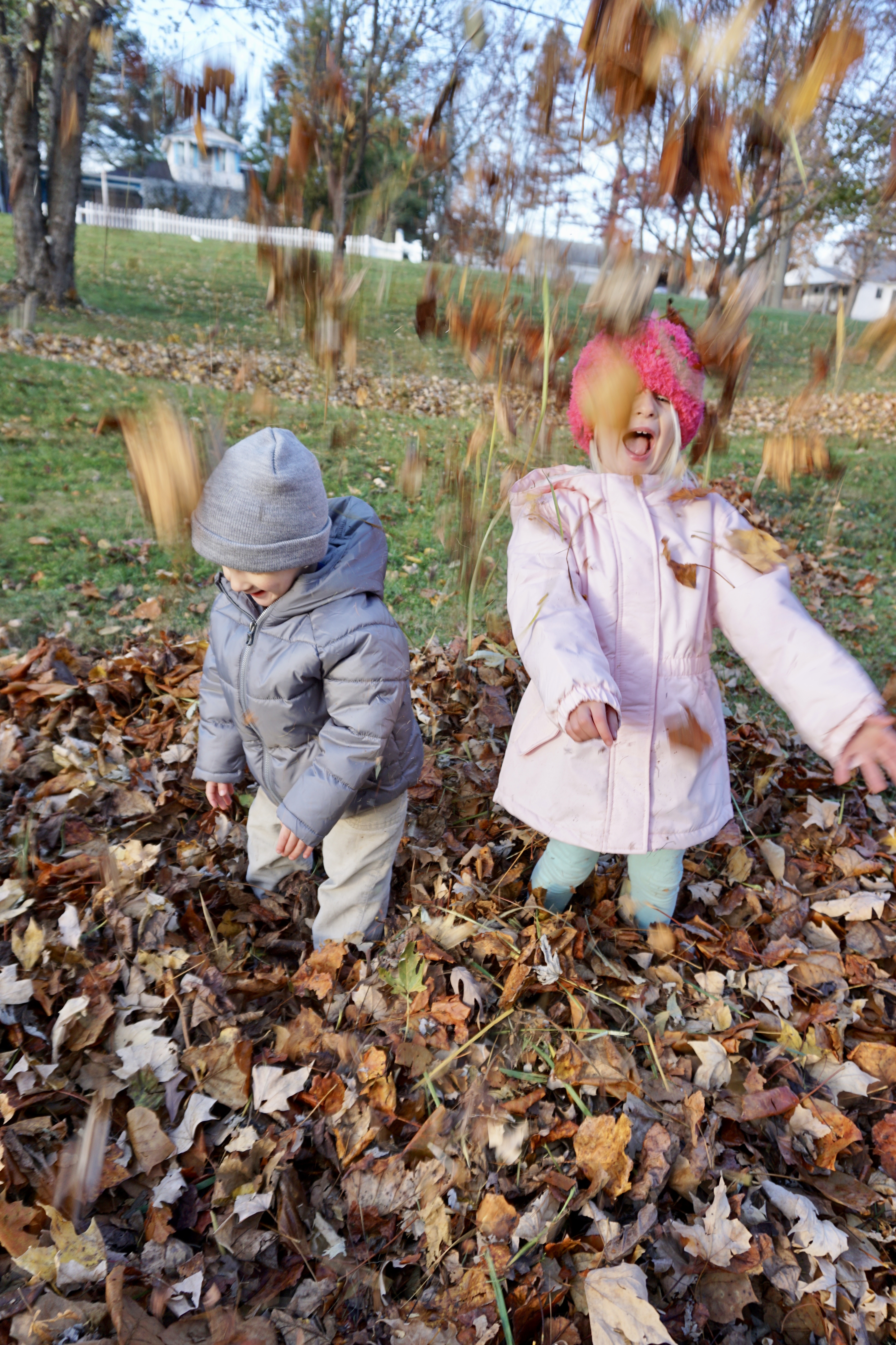 They LOVED playing in the leaves. I could hardly get them to stand still for a picture!