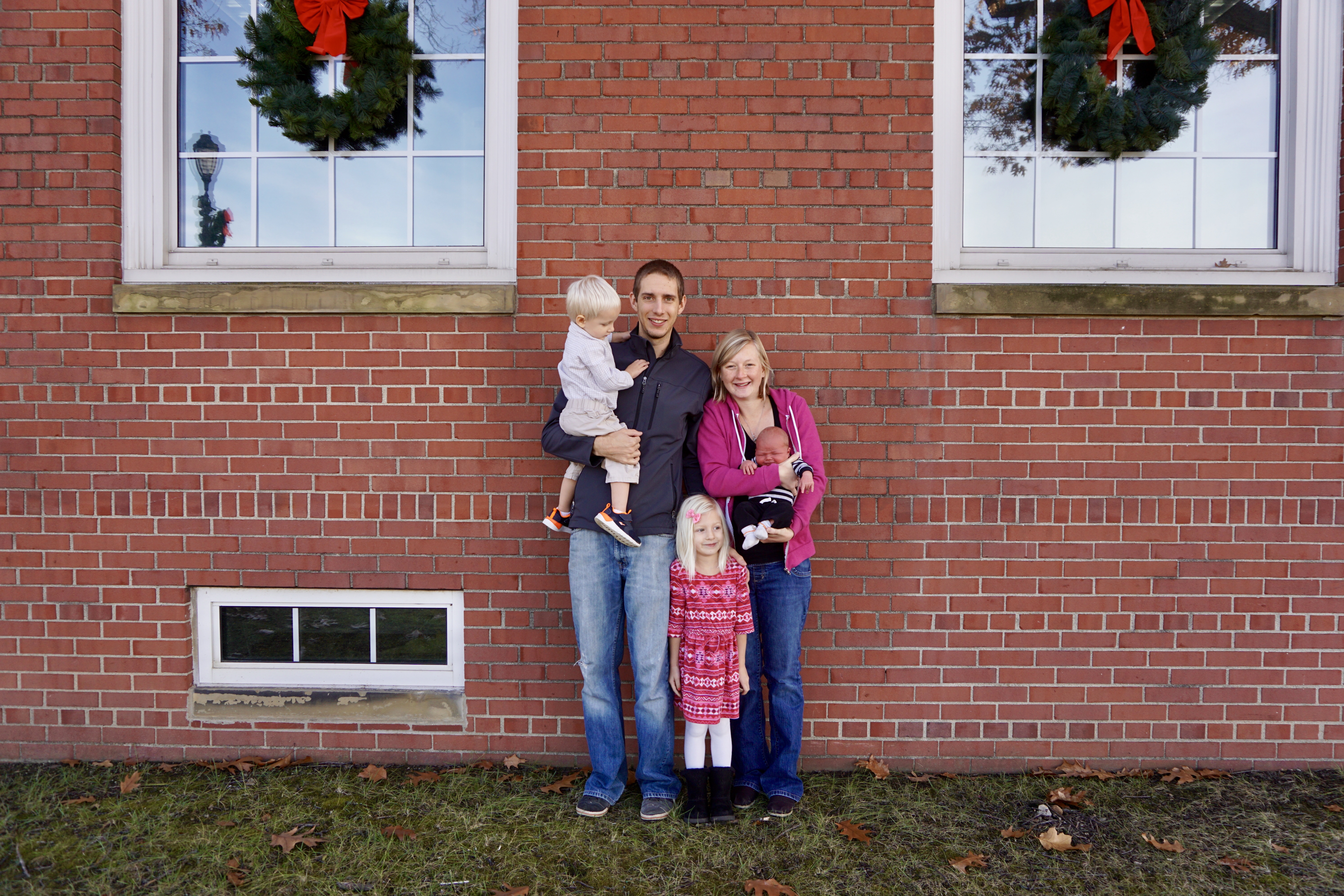 Ezra’s first outing was to the pediatrician the day after he was born to check his jaundice levels, and then this second outing was to the library when he was four days old. LOL. No surprise there…the library is practically our second home! We also asked my MIL to snap a few family pictures so that I can use them for a Christmas card photo!
