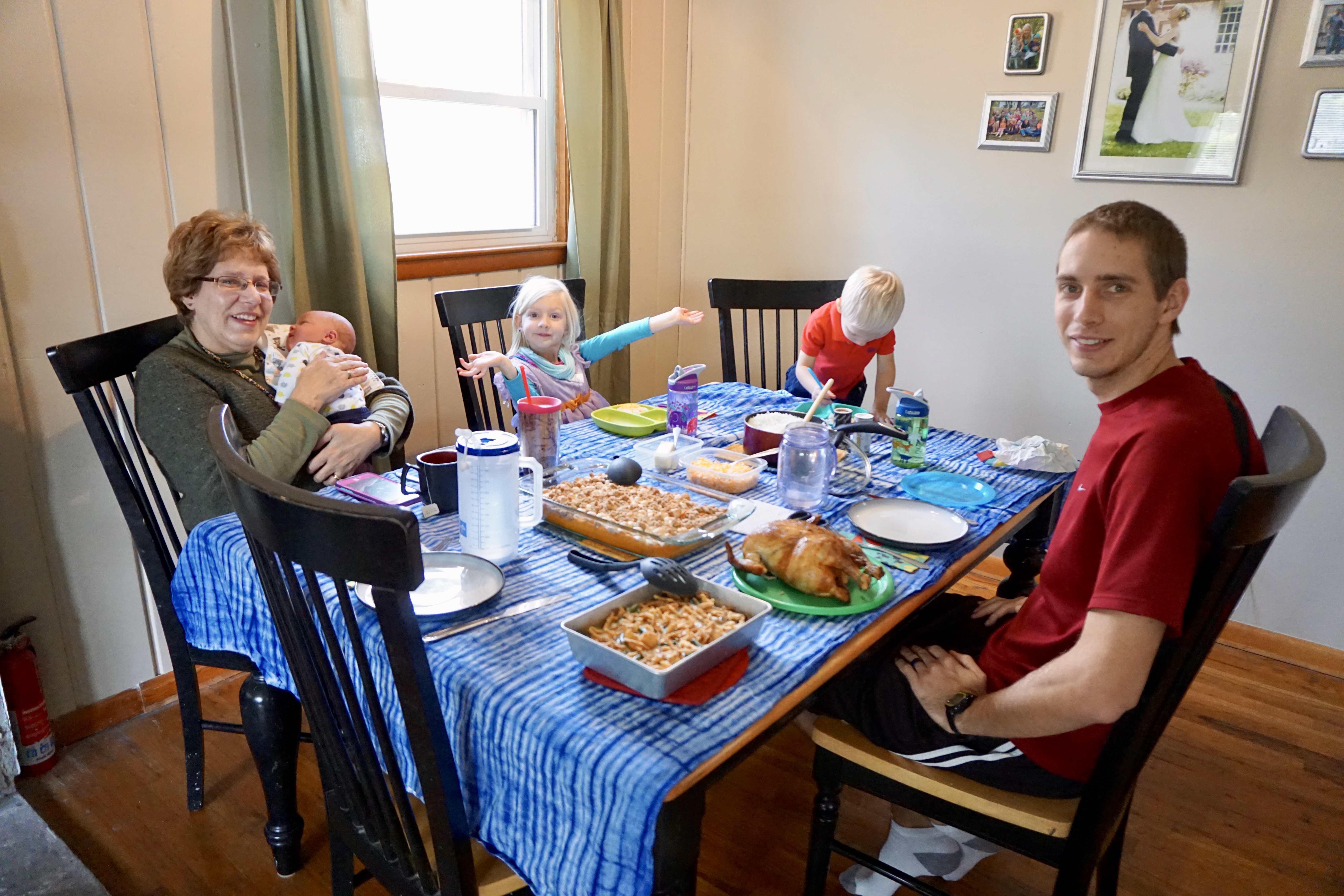 I had Ezra on Monday, we got home from the hospital on Tuesday night, and on Thursday we celebrated Thanksgiving! We just got a rotisserie chicken, and then my MIL made sweet potato casserole, green bean casserole and we had some rice on the side as well. We pulled out a pie filling I had made from our apples and my MIL baked it. It was a lovely Thanksgiving!