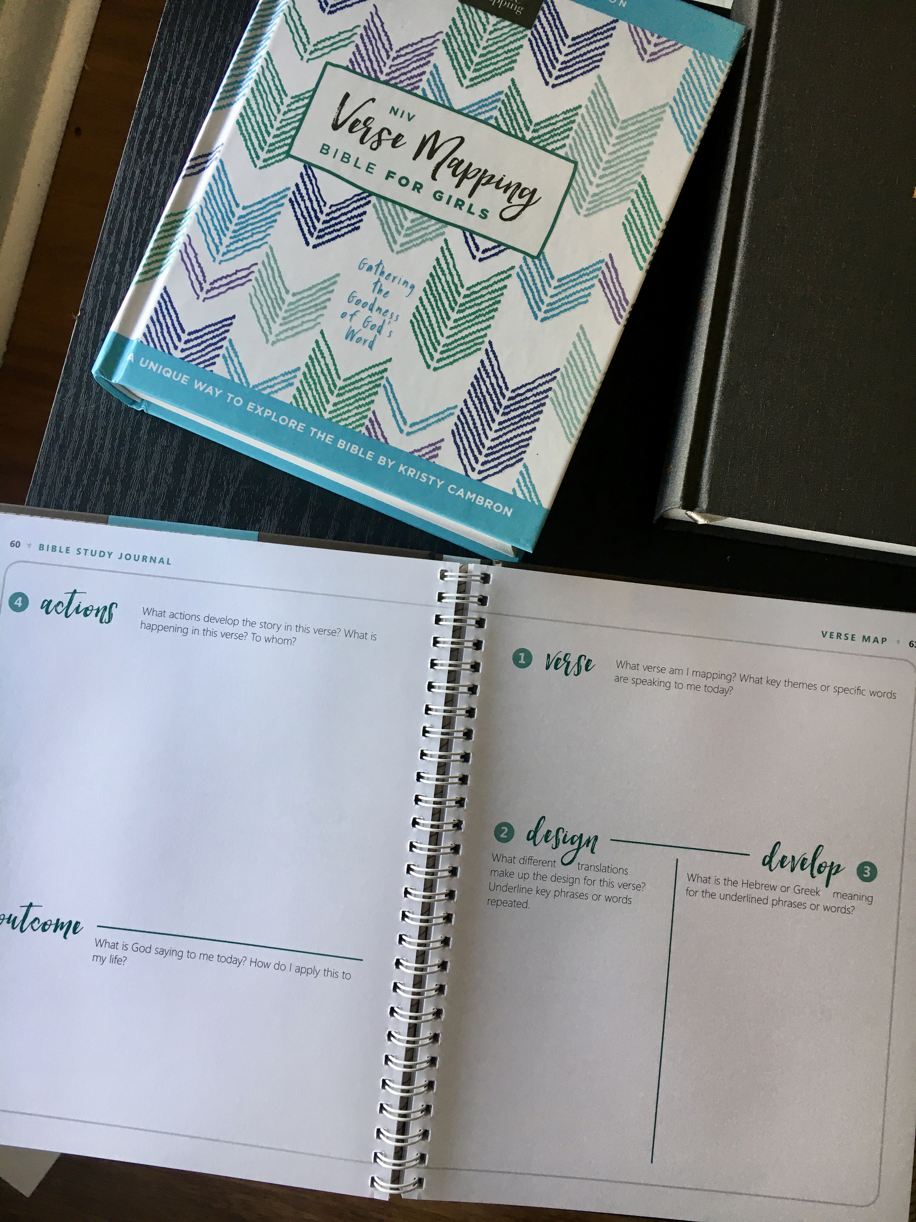I have joined an online group with like minded women and we have one verse that we focus on and journal about. We determine who is the main character of the verse, any Greek or Hebrew words, where it’s occurring. I am loving studying the bible and can’t wait to try verse mapping.