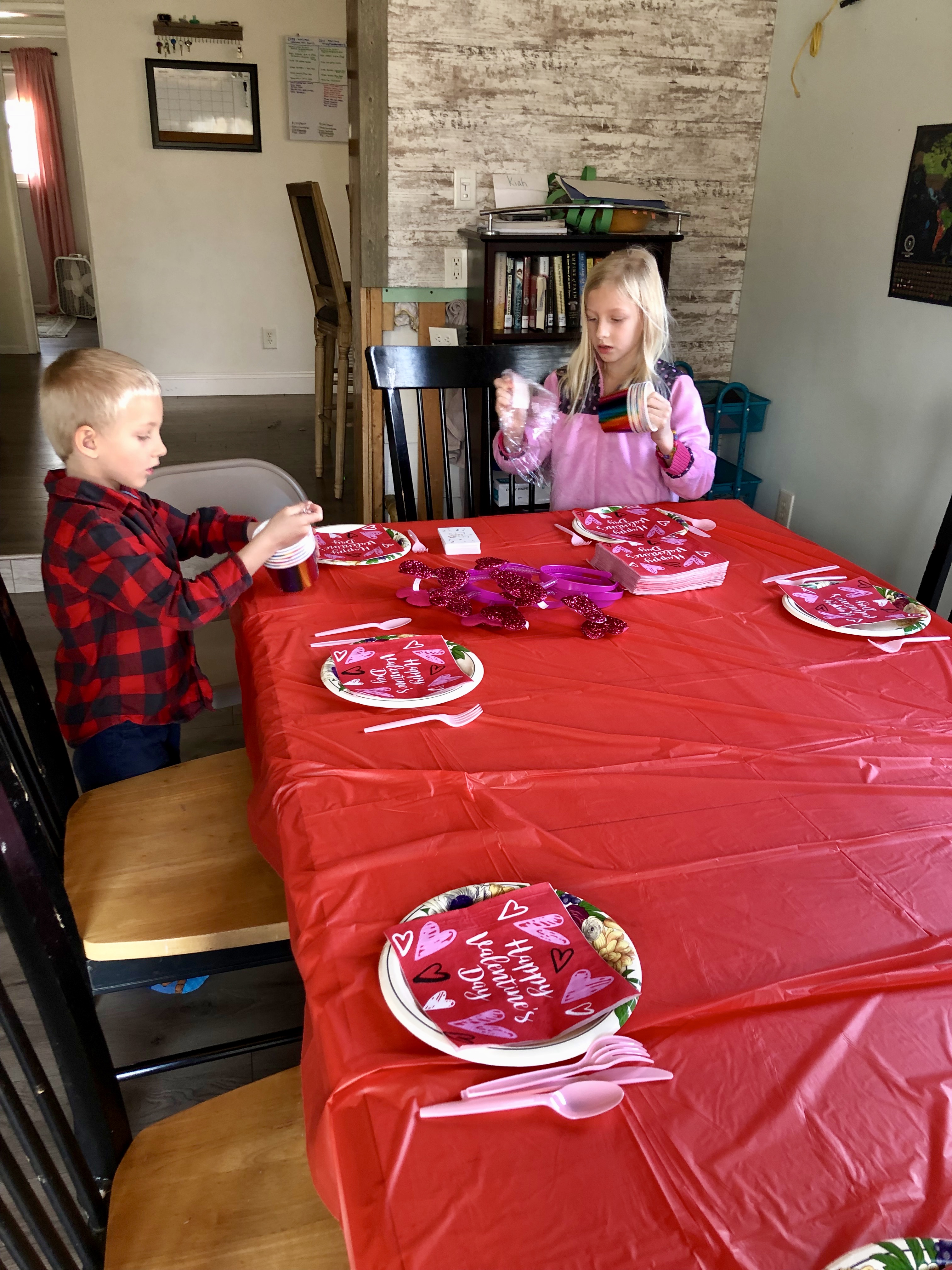 It did take a little bit of self-control on my part to not hover over the decorations. My minimalist soul was dying a little bit inside as we added more and more pink and red. But the kids were SO THRILLED with each and every item that they put on the table and even though it was beyond stuffed, it was stuffed with so many things that brought JOY to the kids and the guests!
